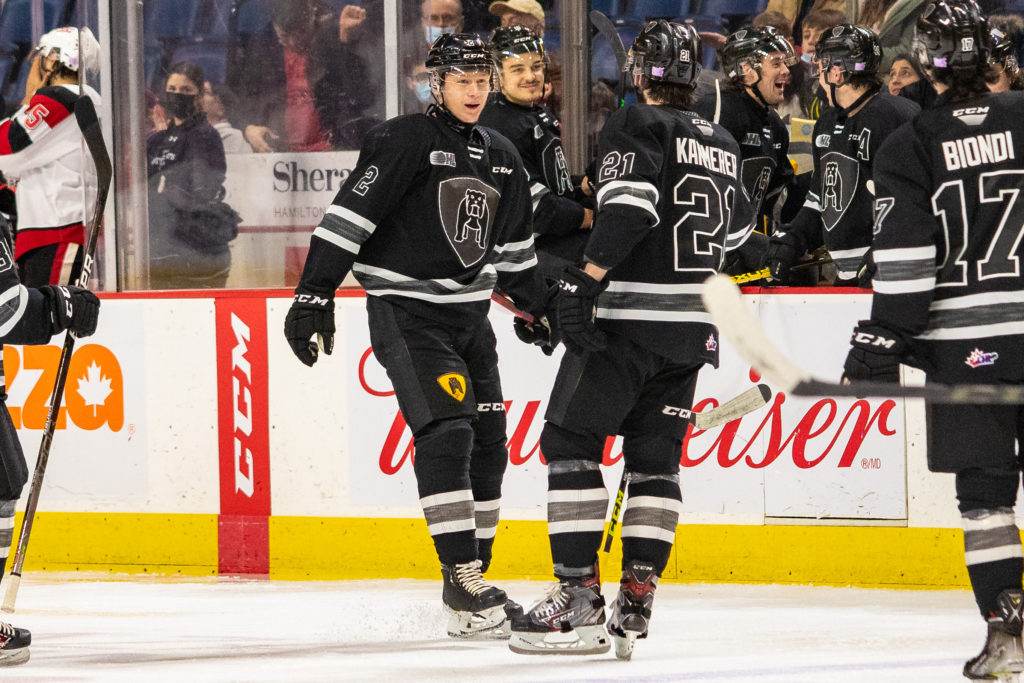 HAMILTON, ONTARIO. On the road to the Outdoor Showcase, the Bulldogs began a back-to-back with a ride up the 400 to Barrie on Thursday night, looking to extend their lead in the Eastern Conference and pick up their first win of the season at Sadlon Arena.