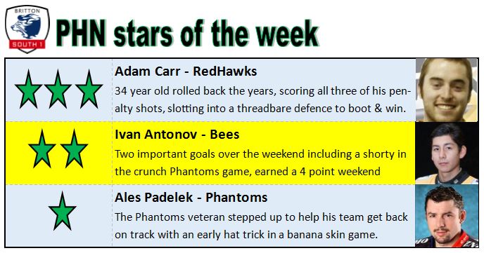 The Phantoms also lost against the Bison to narrow the gap a little, but still had a number of games in hand on their would-be challengers.