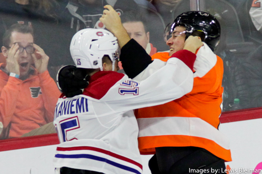 Jeff Petry #26 of the Montreal Canadiens ,Nicolas Aube-Kubel #62 of the Philadelphia Flyers and Goalie Carey Price #31 of the Montreal Canadiens
