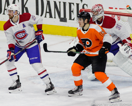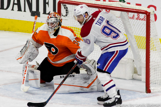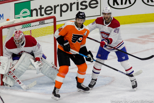 Montreal Canadiens Goalie Carey Price #31, Sean Couturier #14 of the Philadelphia Flyers and Marco Scandella #28 of the Montreal Canadiens