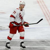 Martin Necas, Nino Niederreiter, Teuvo Teravainen, and Lucas Wallmark potted single markers for the Canes.