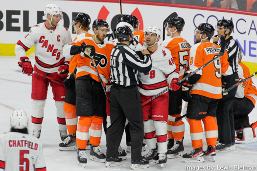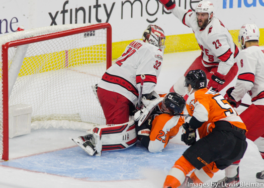 PHILADELPHIA – The visiting Carolina Hurricanes blew a 2-0 lead in the first period, what a surprise for an NHL game, and then needed a late goal from Martin Necas in the third period to tie the game, 3-3, and force extra time with the Flyers.