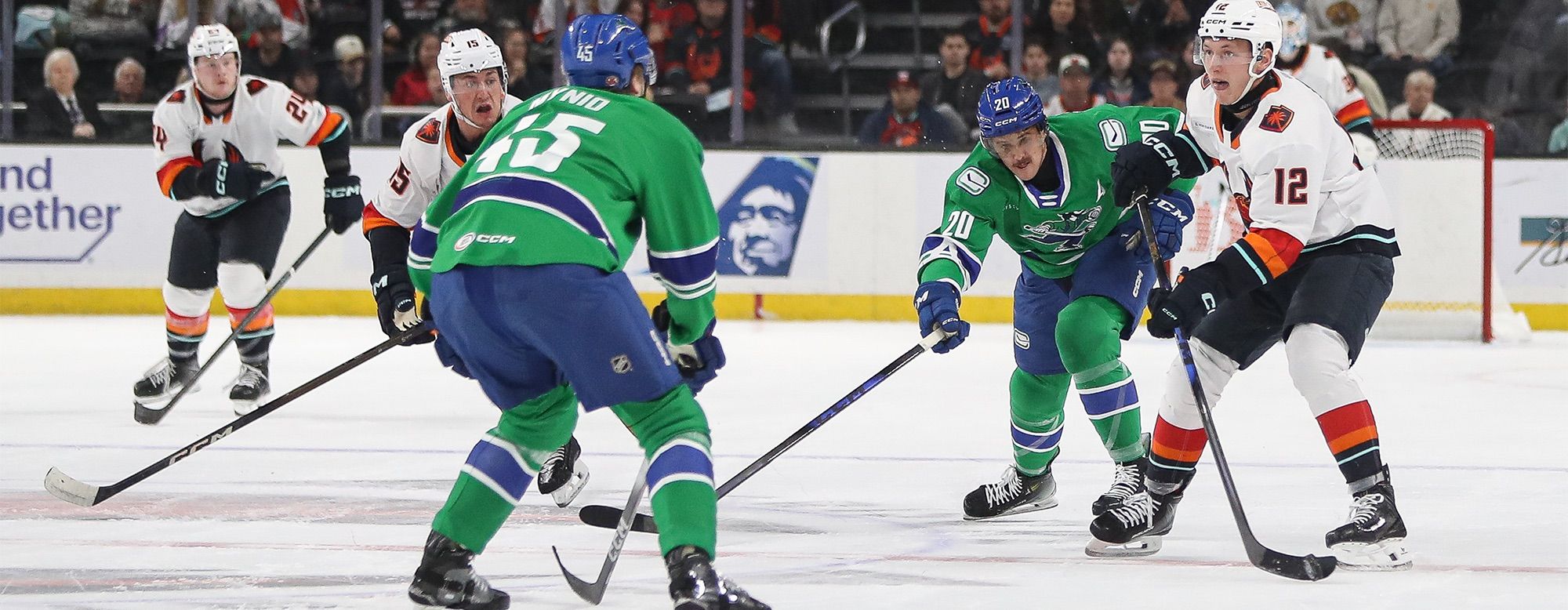 After securing at least one point, Abbotsford looked to close it out in the extra frame, but it was Logan Morrison who ended it for the Firebirds, scoring on a sharp-angle shot two-and-a-half minutes into overtime. The Canucks fell 3–2 to Coachella Valley but picked up a point to extend their point streak to five games. They now head to San Diego to take on the Gulls tomorrow evening.