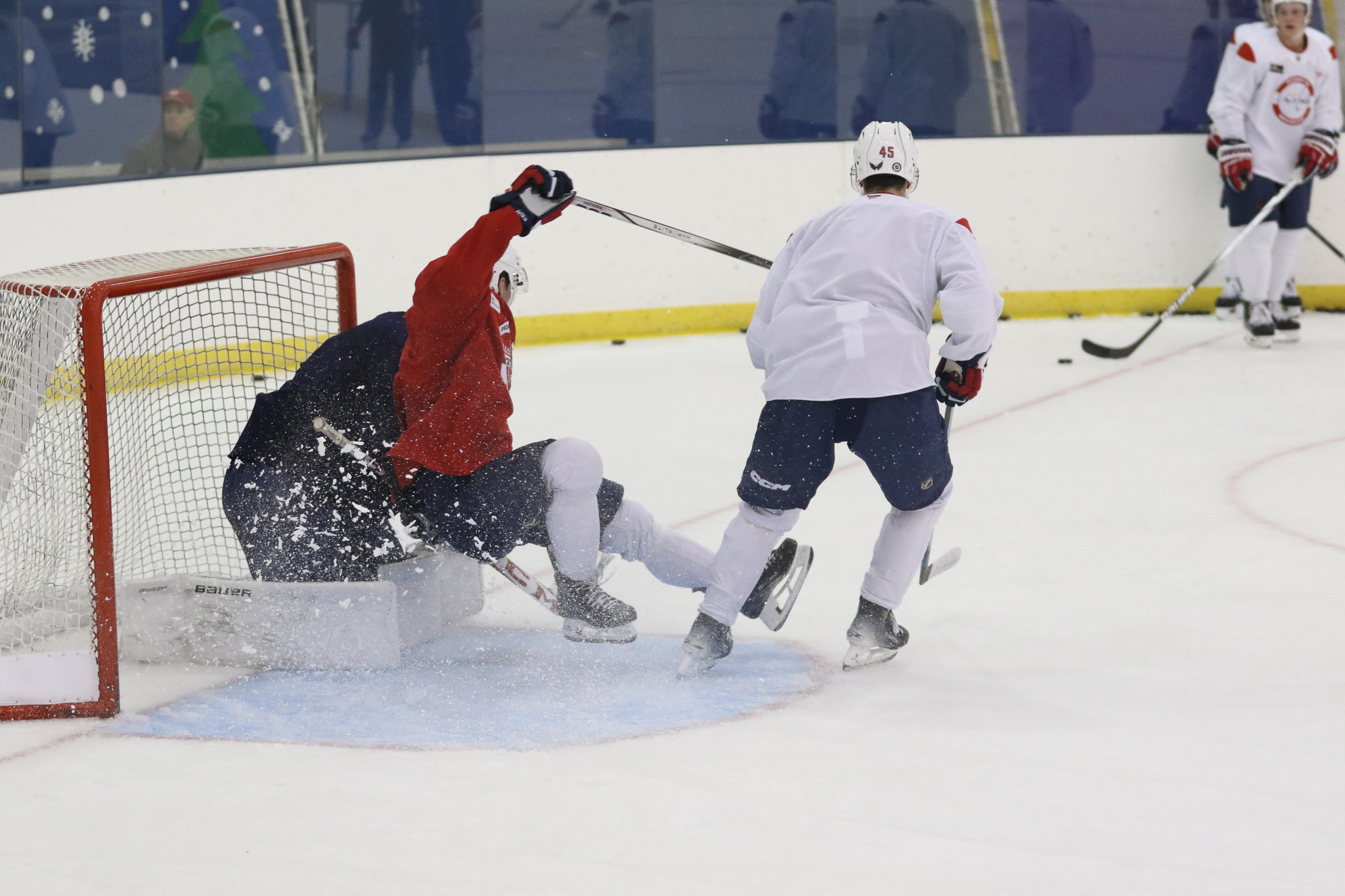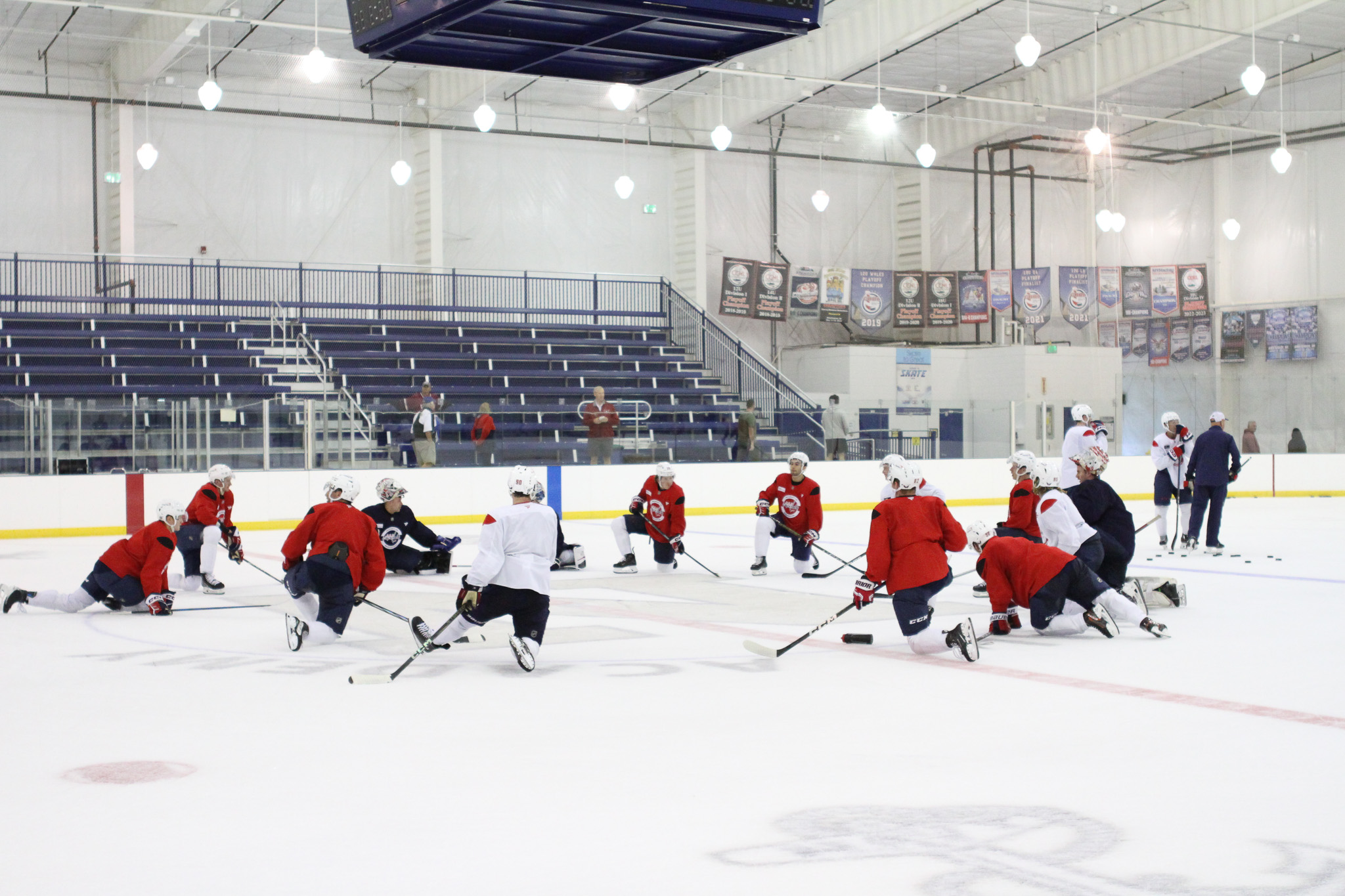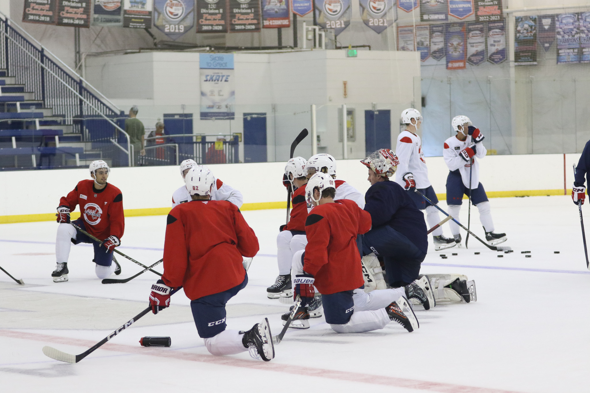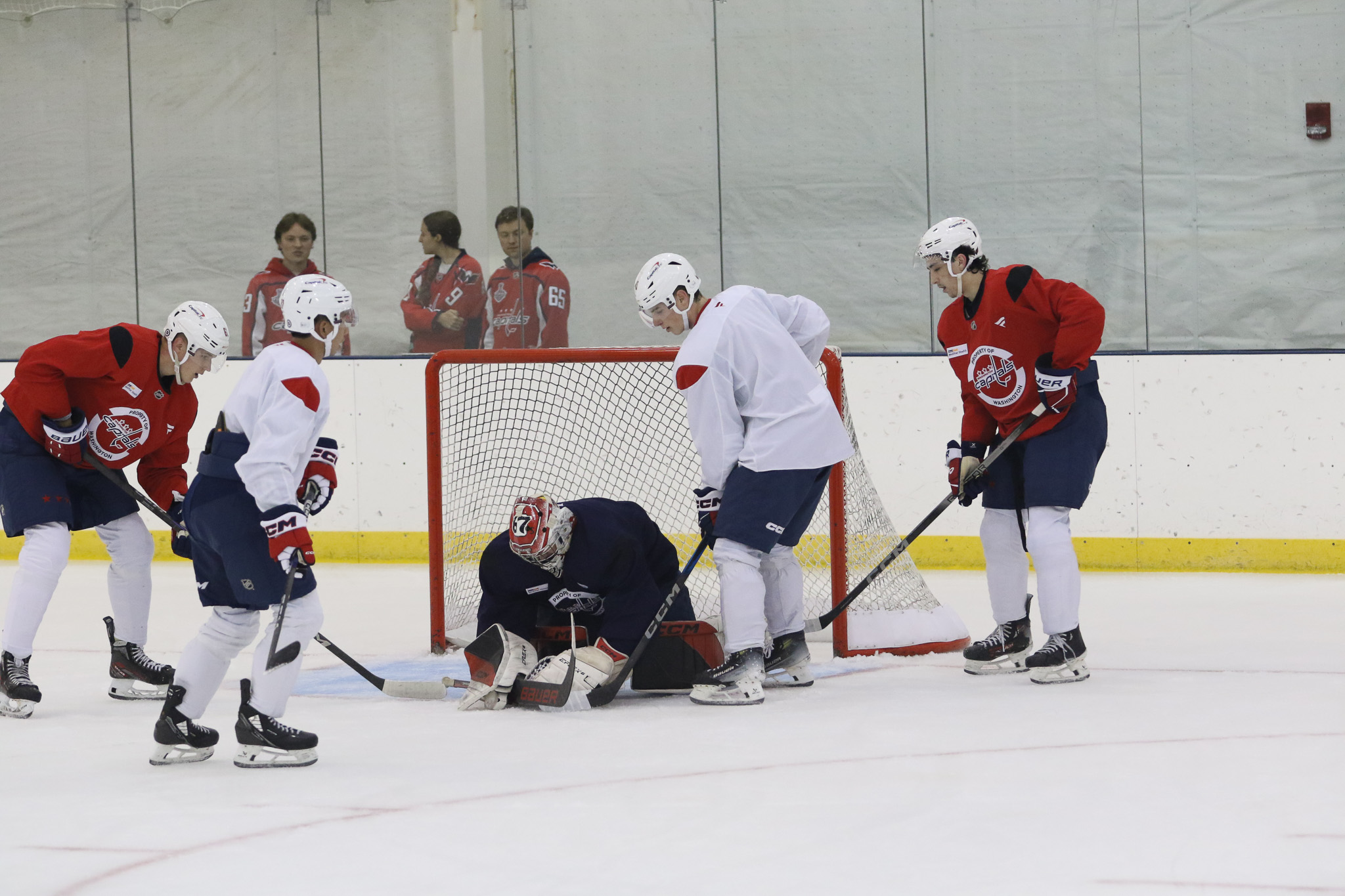 Former Capital’s players Braden Holtby, Olie Kolzig and Brooks Orpik are on the ice as coaches for these training sessions. Goaltender’s hit the ice for a half an hour before the full group of invitees hit the ice.