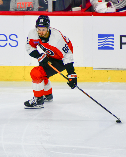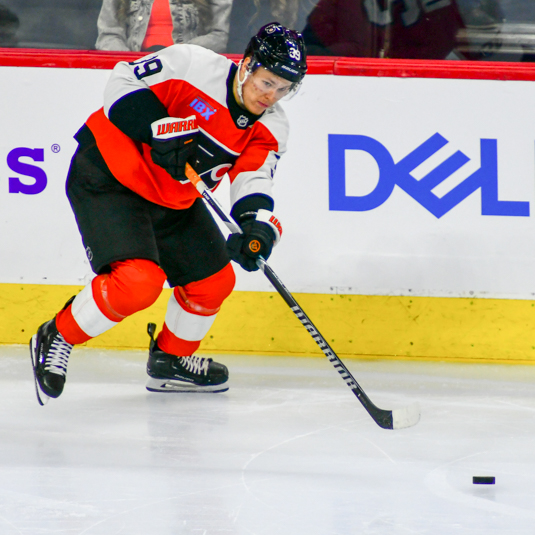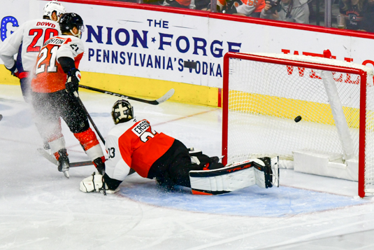 Travis Sanheim was the lone striker for the Flyers; his early third period goal cut the deficit to 2-1.