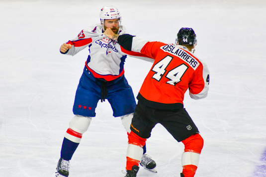 Nic Dowd opened the scoring when he struck off an odd man rush on a penalty kill to give the Caps a 1-0 lead.