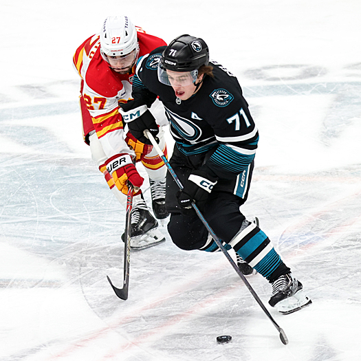 Sharks rookie Igor Chernyshov made his NHL debut and scored a point with an assist on the Sharks second goal of the game – Photo by Jack Lima