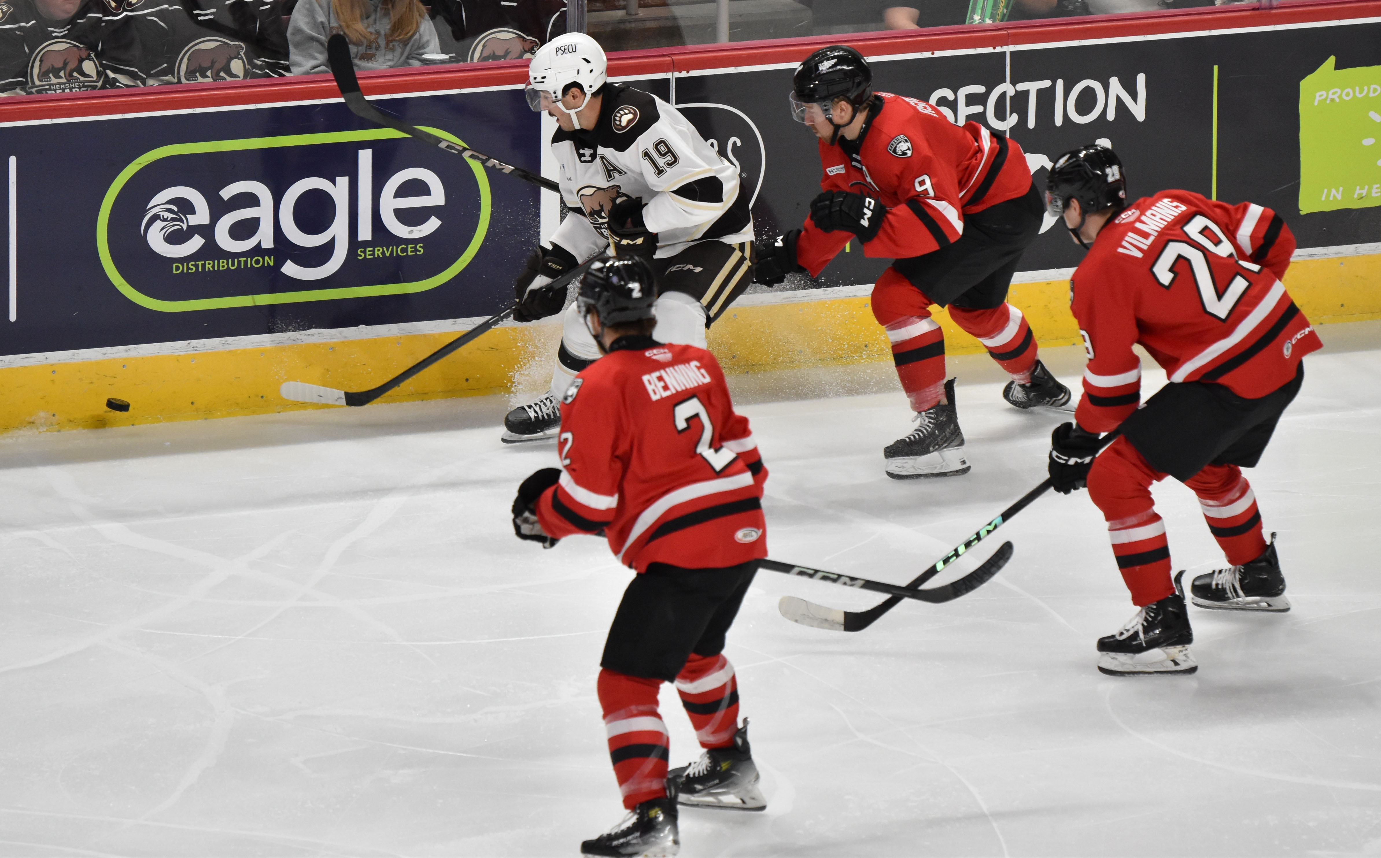 Charlotte took a point after coming back from a two-goal deficit thanks to clutch goals from Mike Benning and Ryan McAllister, but Hershey edged them out in a shootout 4-3.