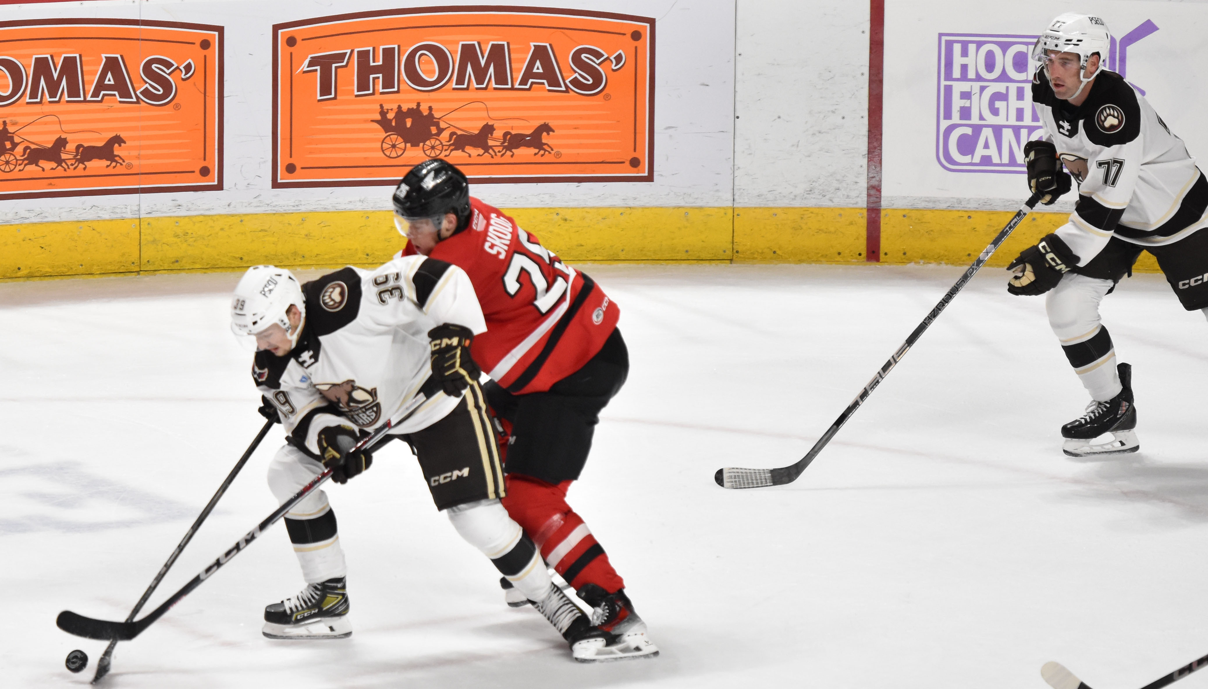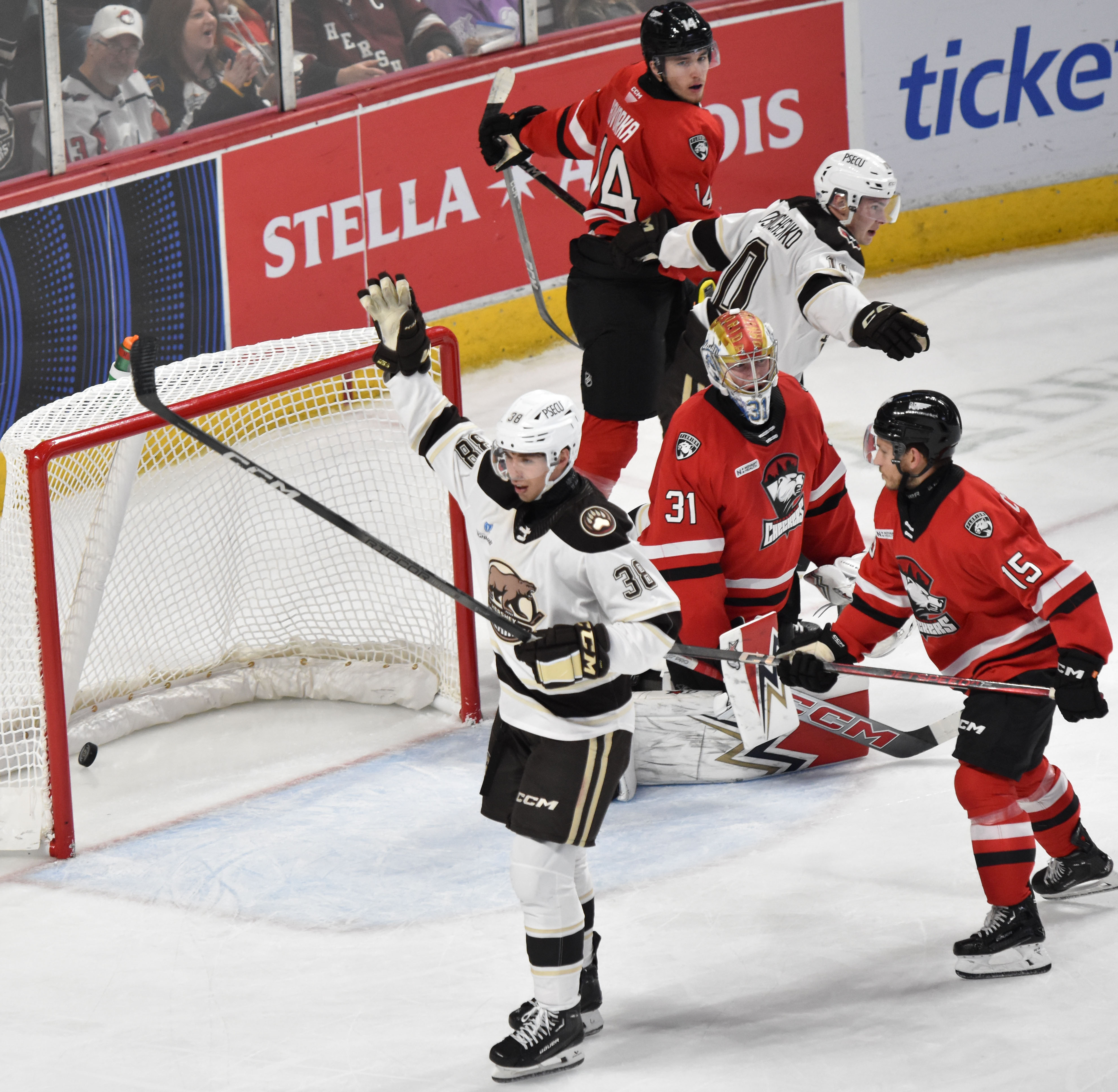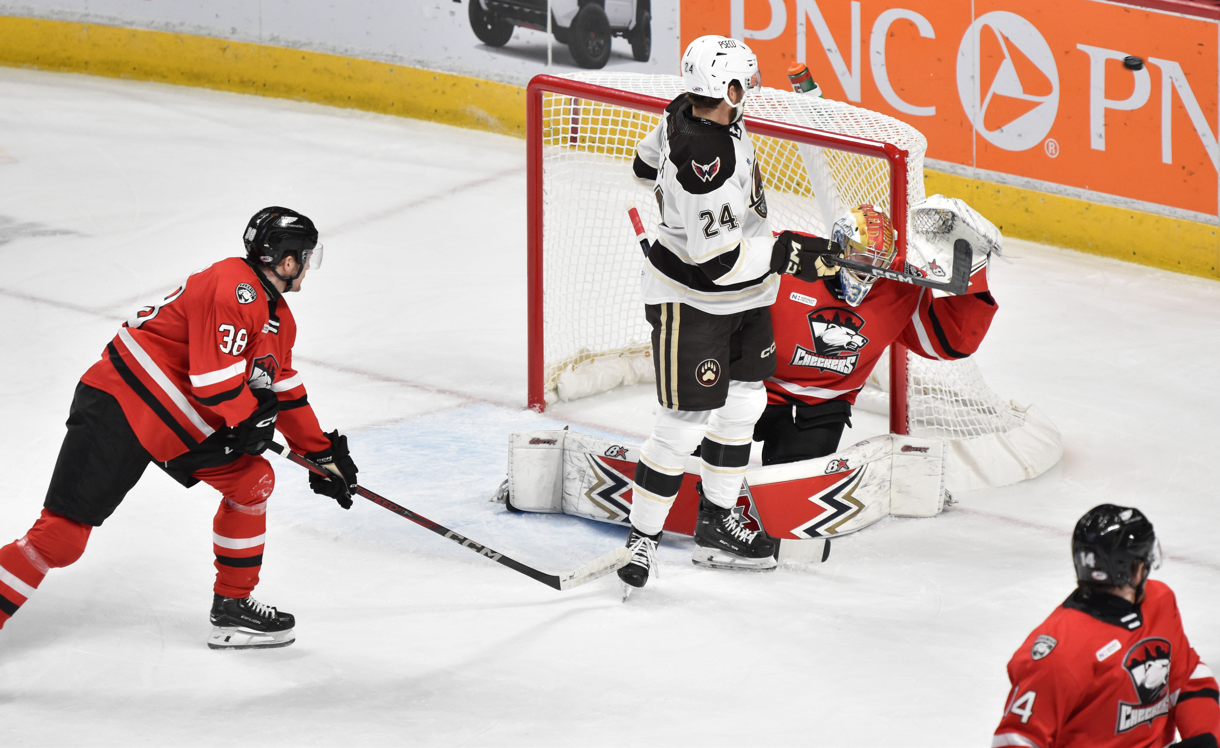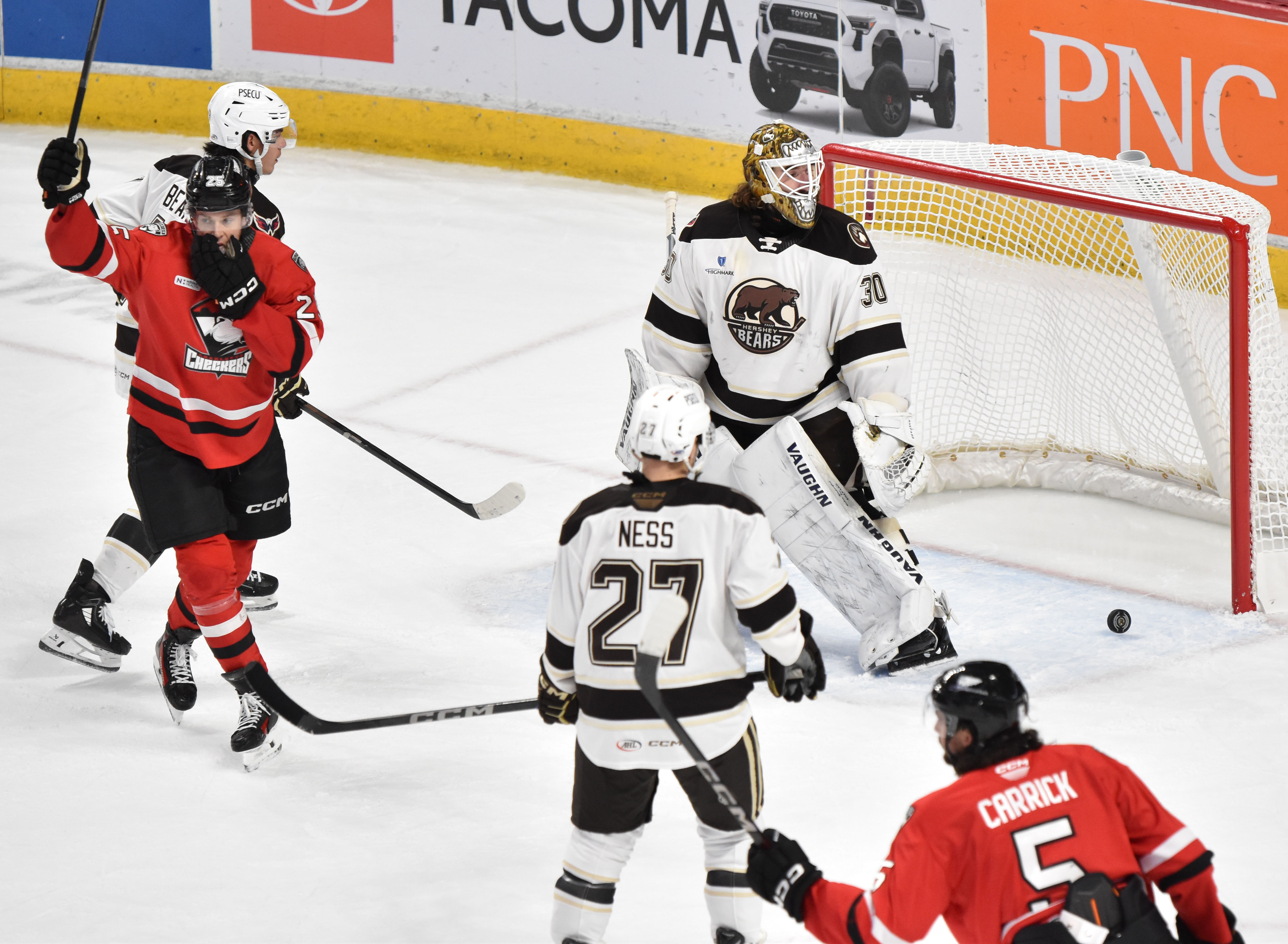 - A scoreless overtime would send the game into a shootout, where the first five shooters were all denied until Pierrick Dube converted in the third round for a Hershey – earning the Checkers a point on the road but giving the Bears the win.