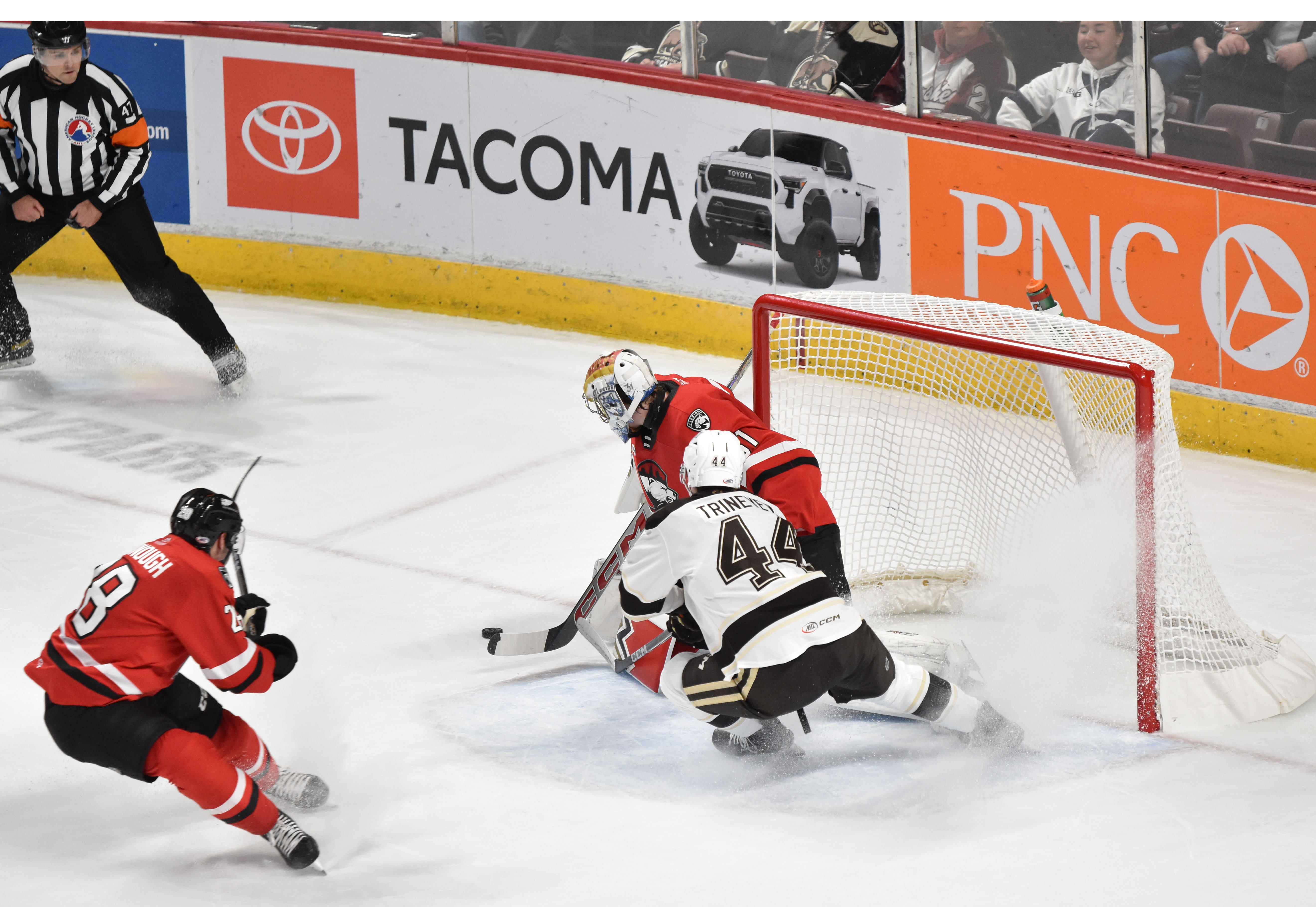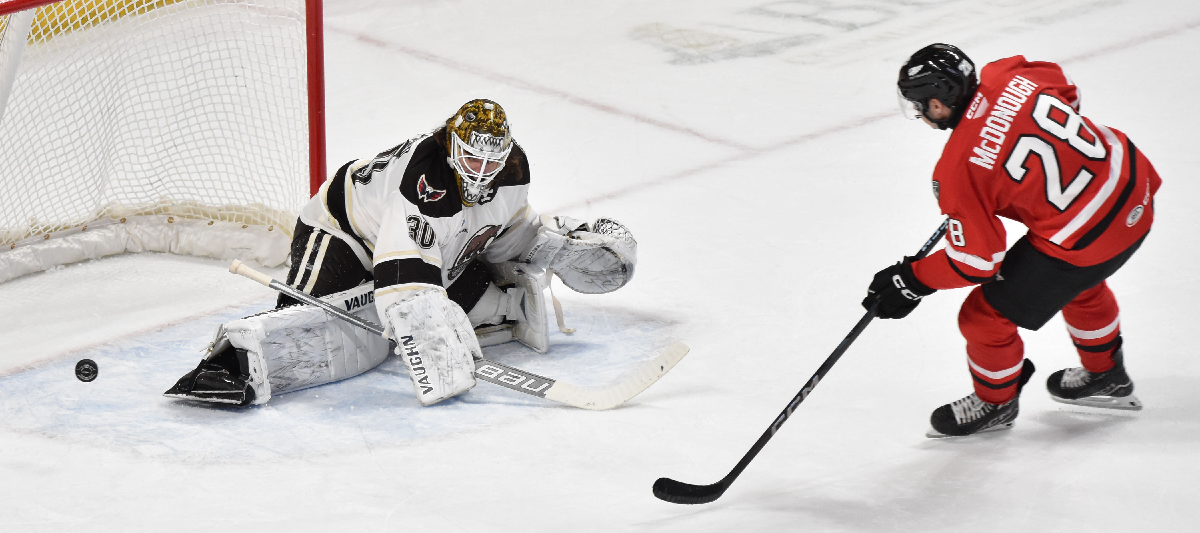 - The battle continued as McAllister tied the game in the third by knocking in a rebound out front and forced the contest into overtime
