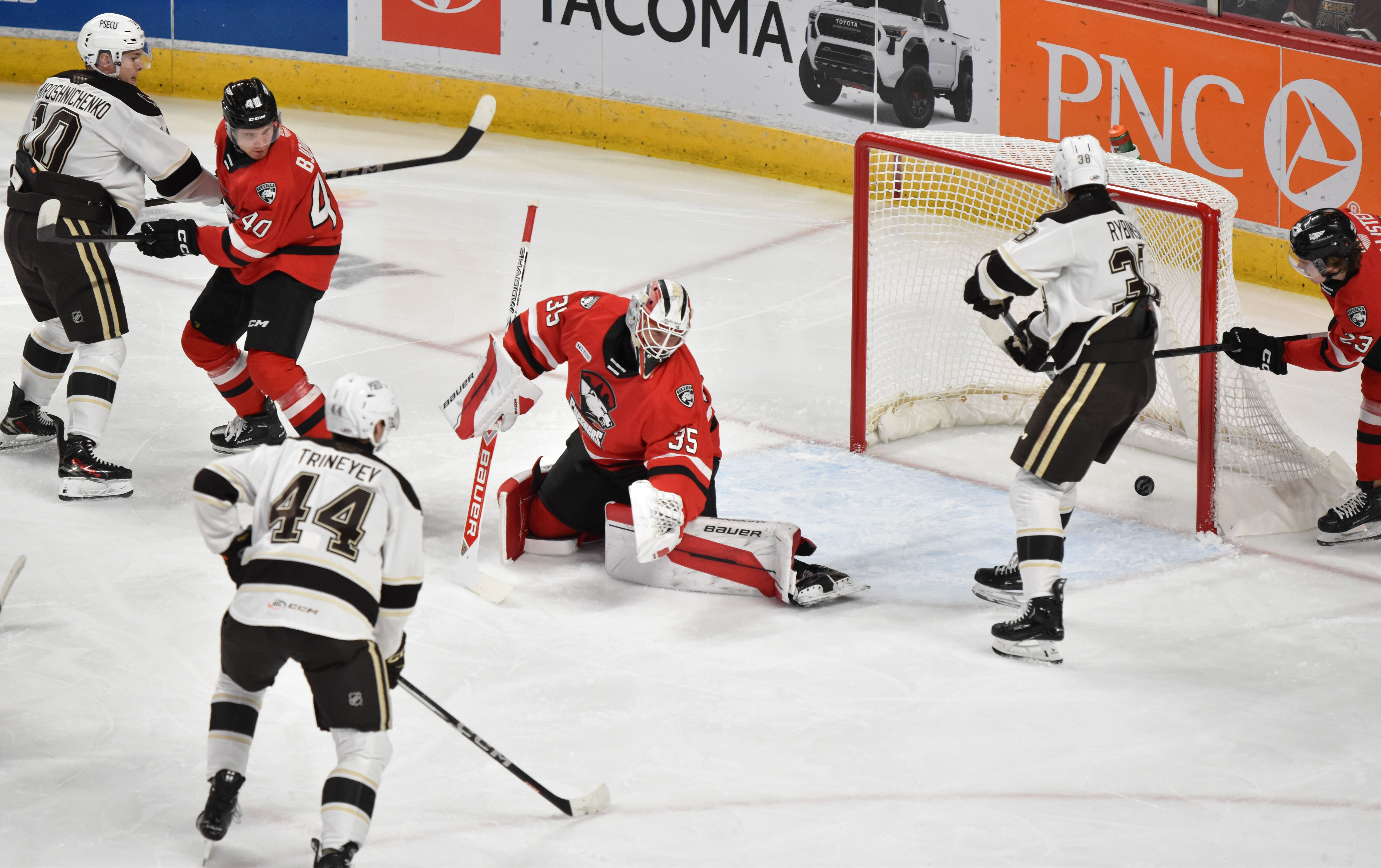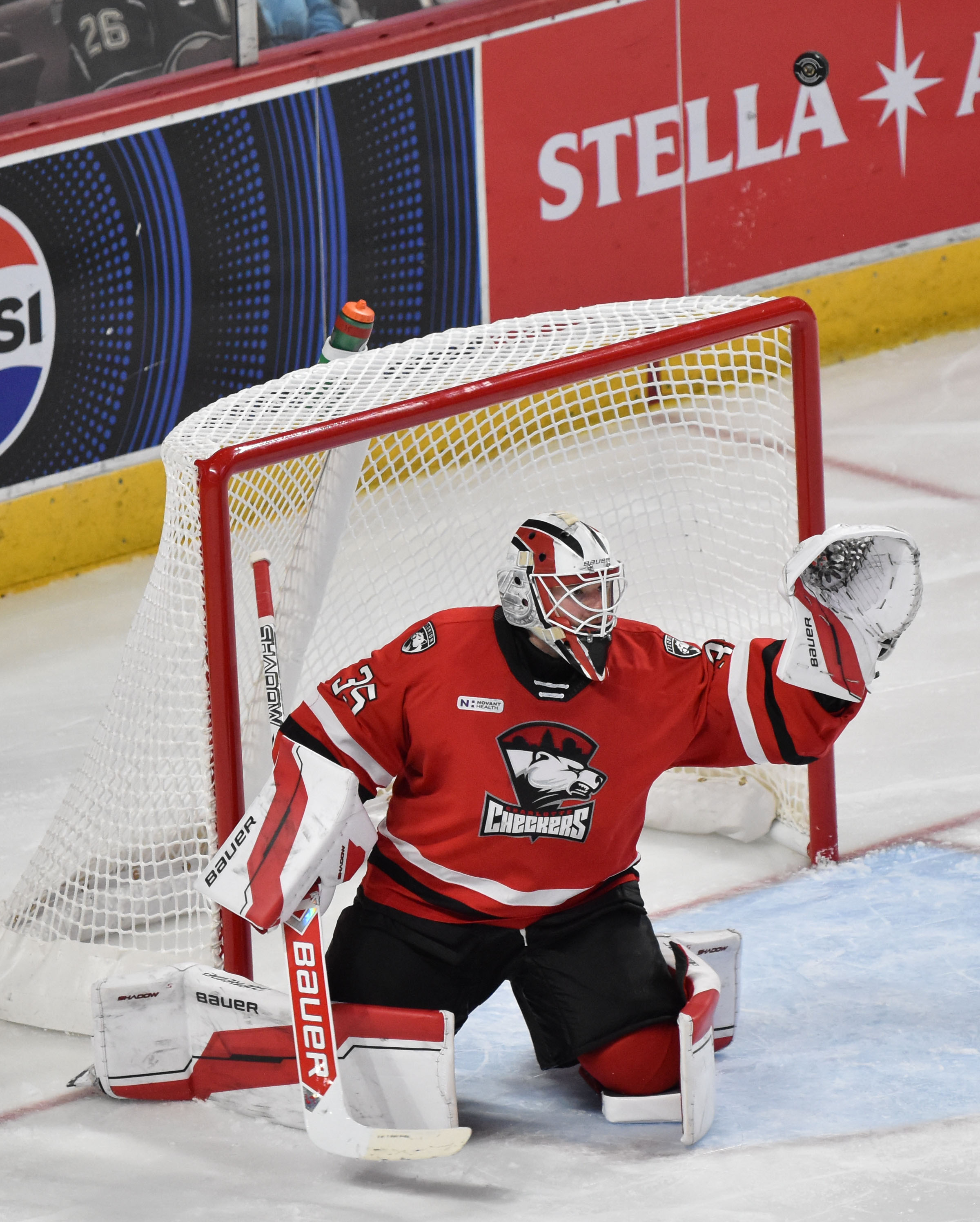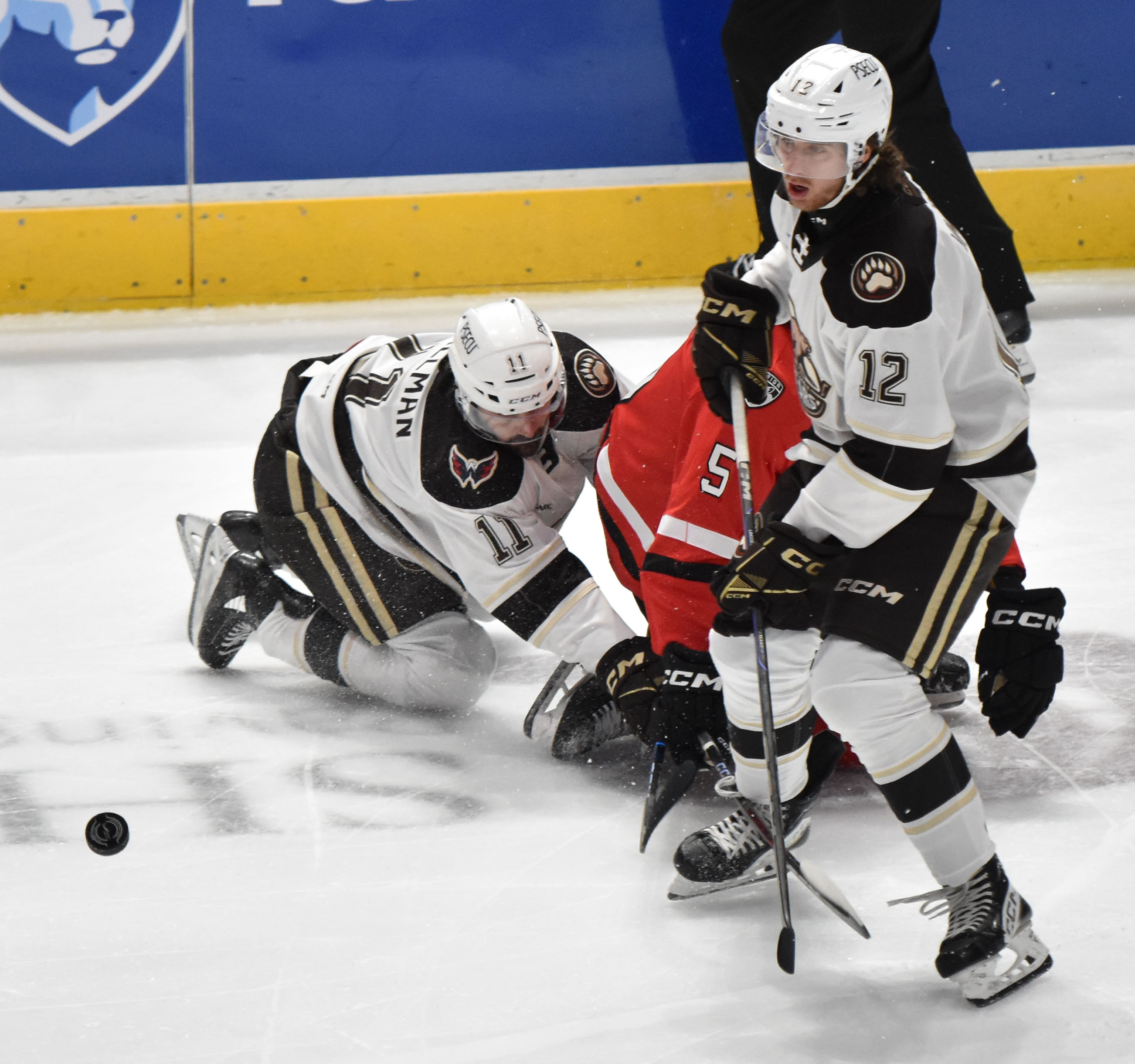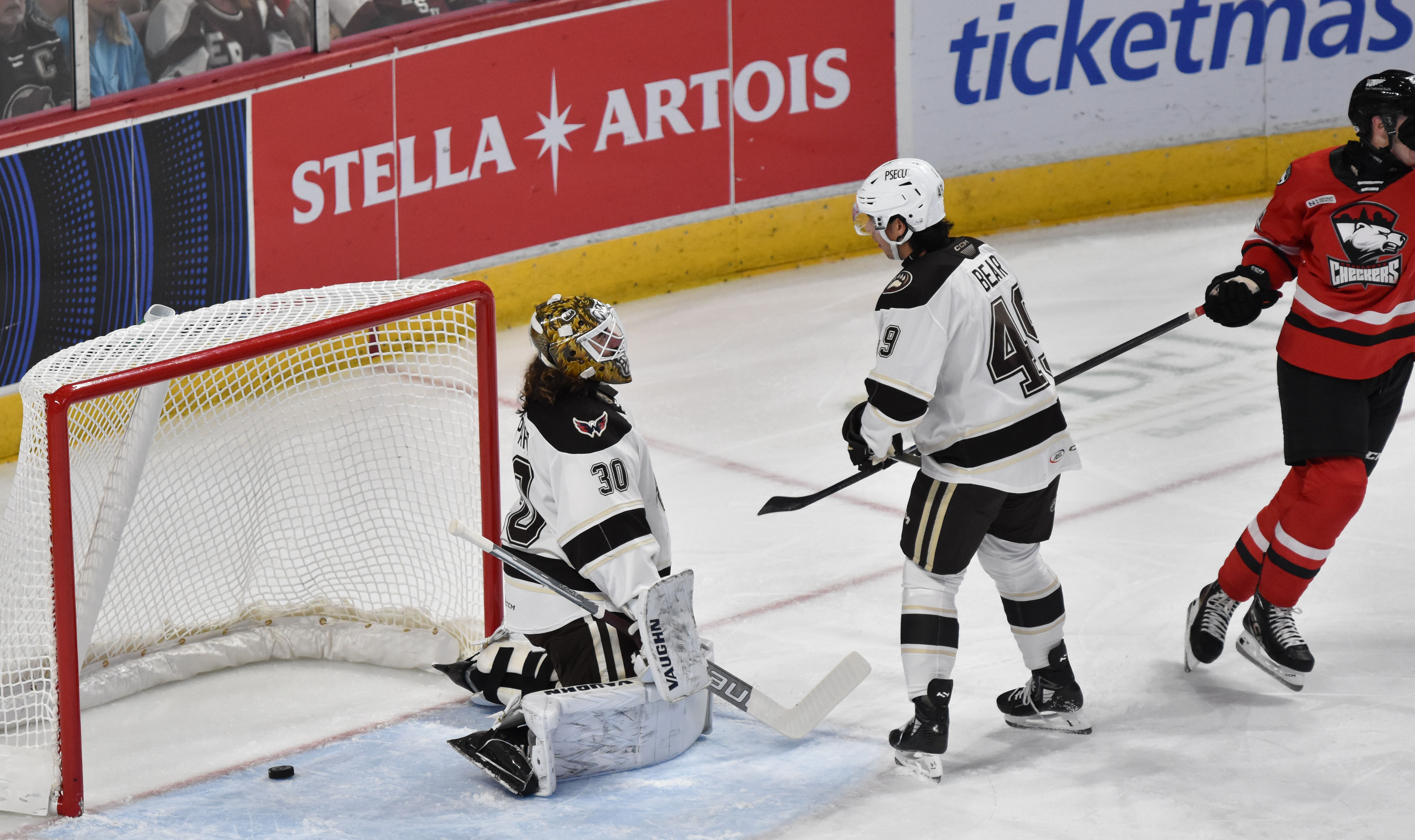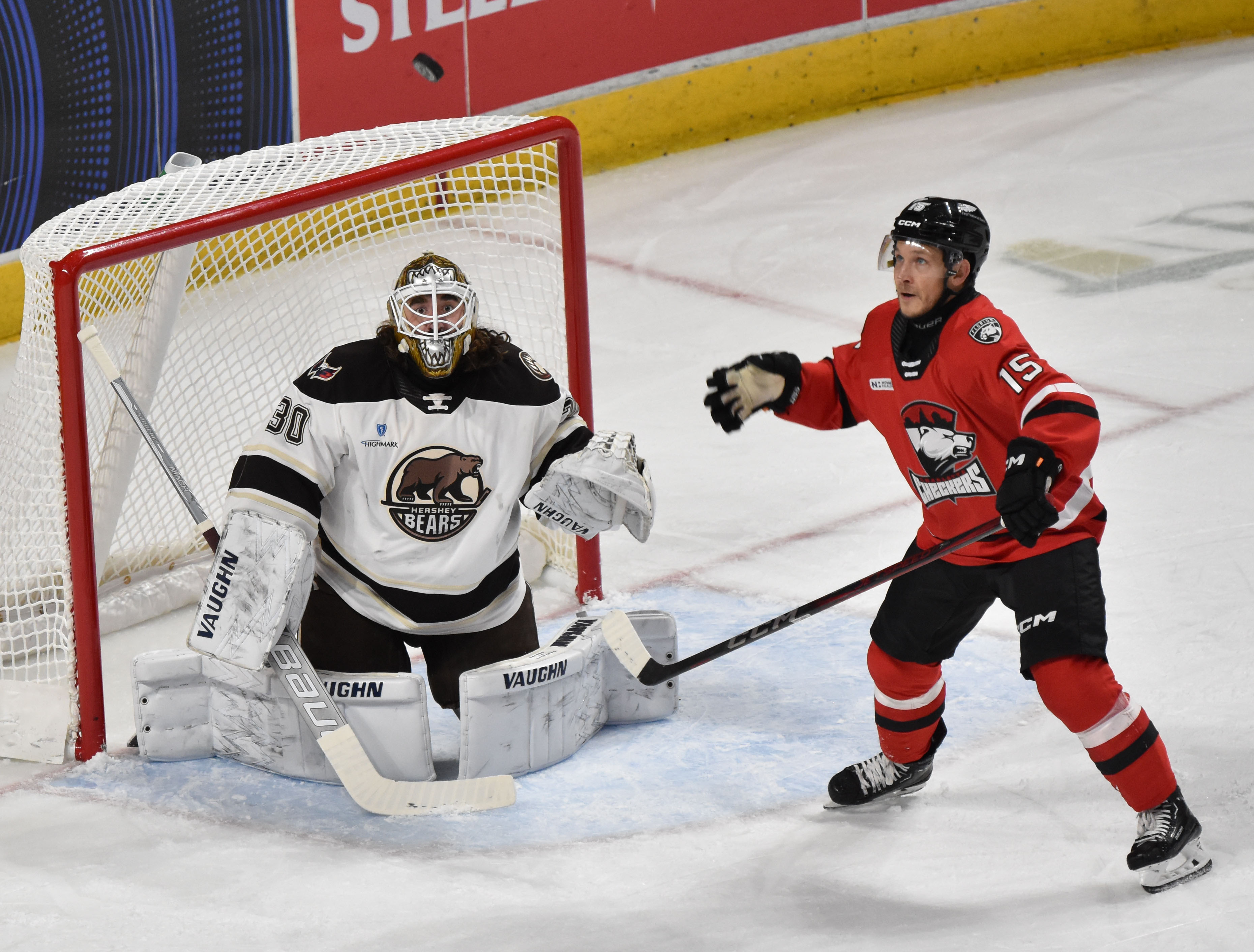 The Bears made things interesting down the stretch by converting on a two-man advantage to pull within a goal, but the Checkers stomped out any comeback hopes with an empty-net dagger from Rasmus Asplund and a strong finish between the pipes from Ken Appleby – who ended the night with 22 saves and a key win over the division leaders.