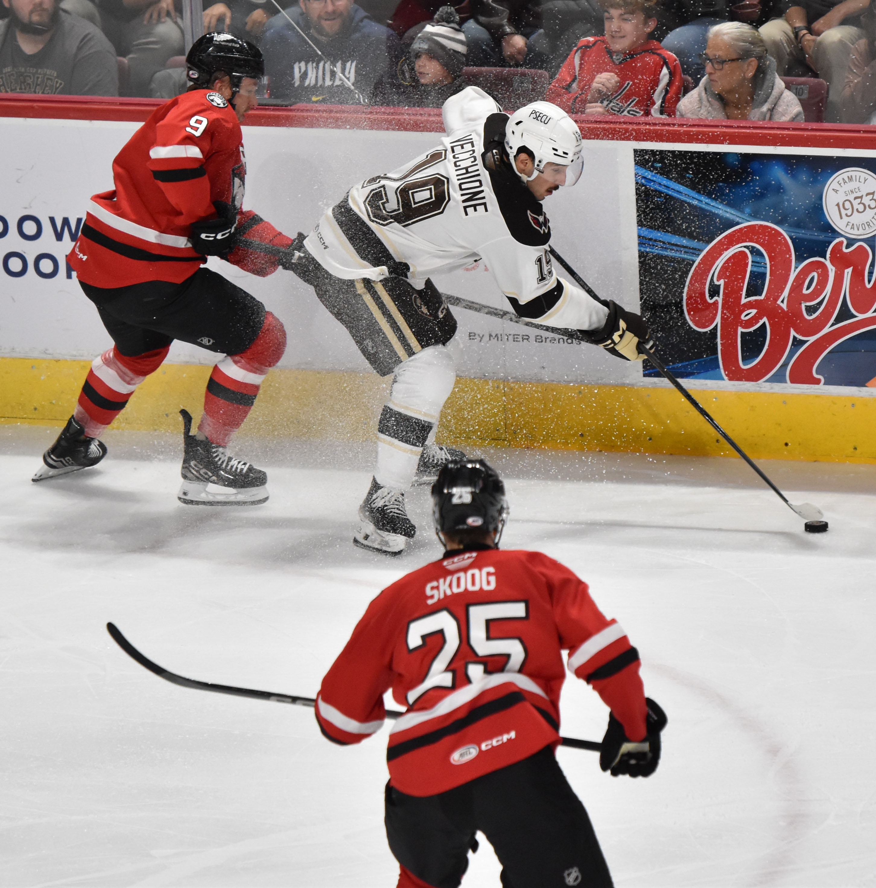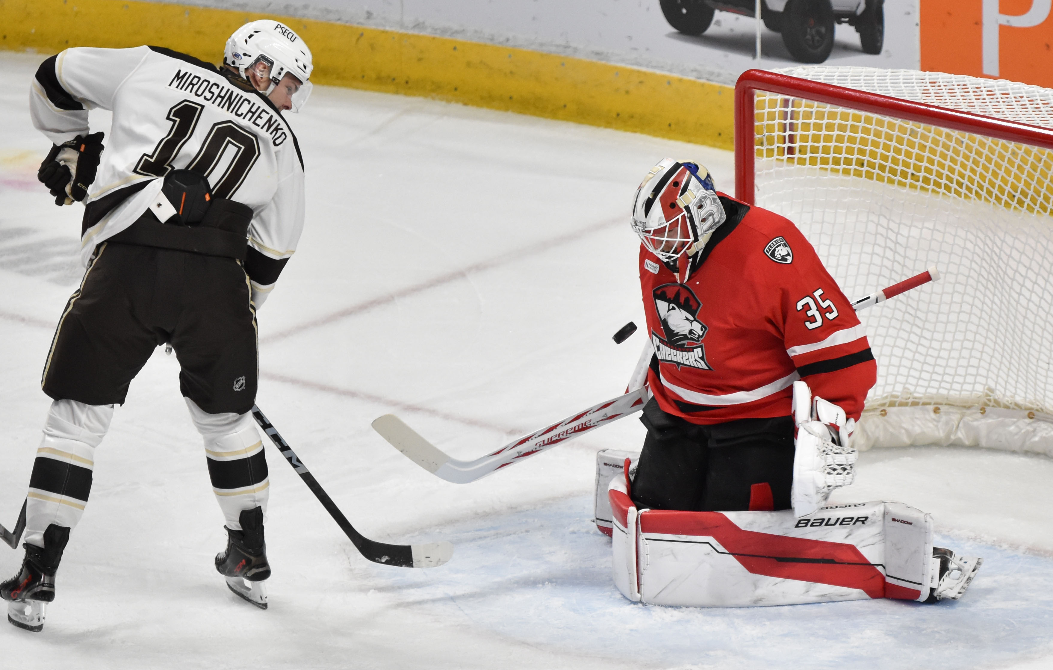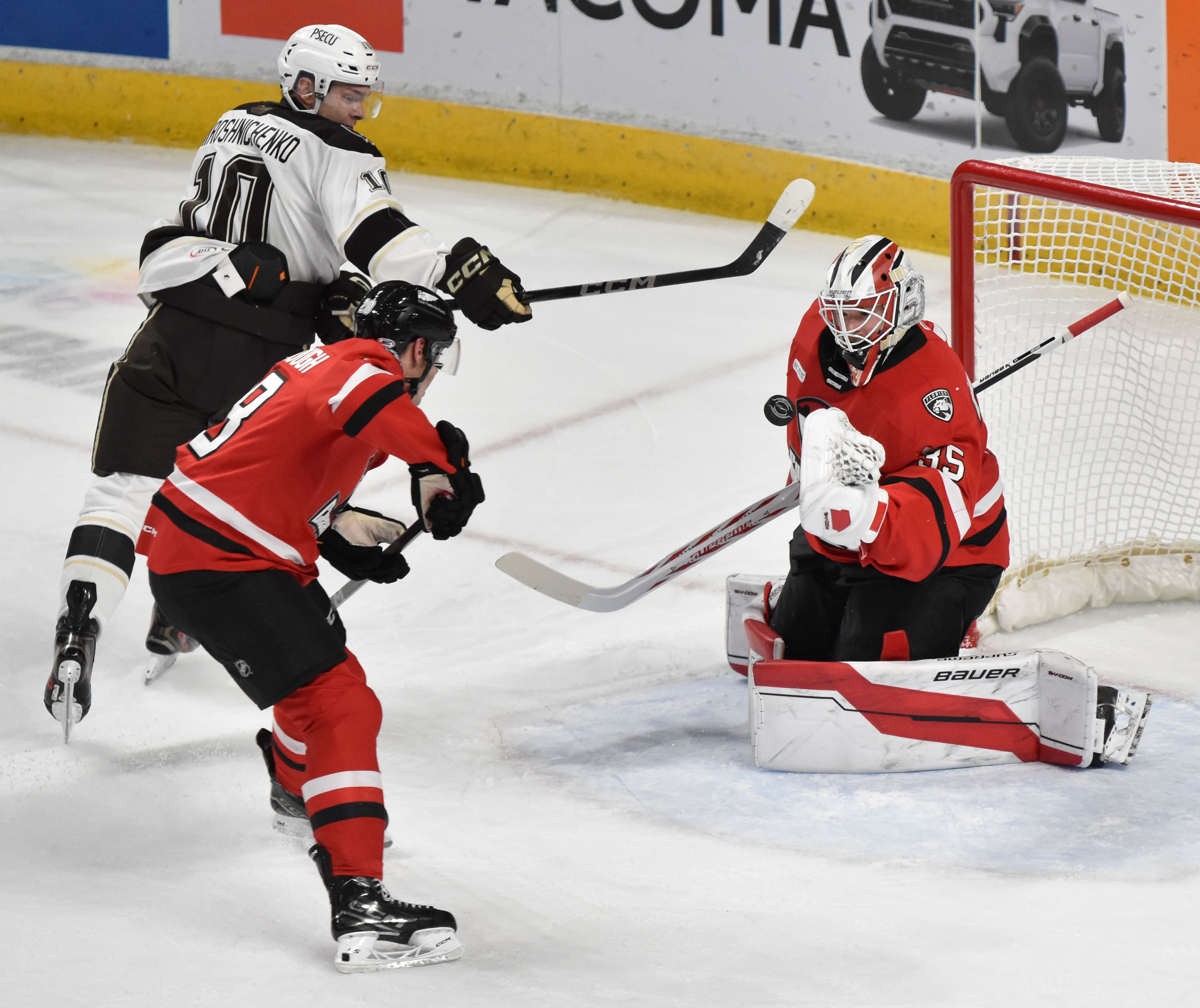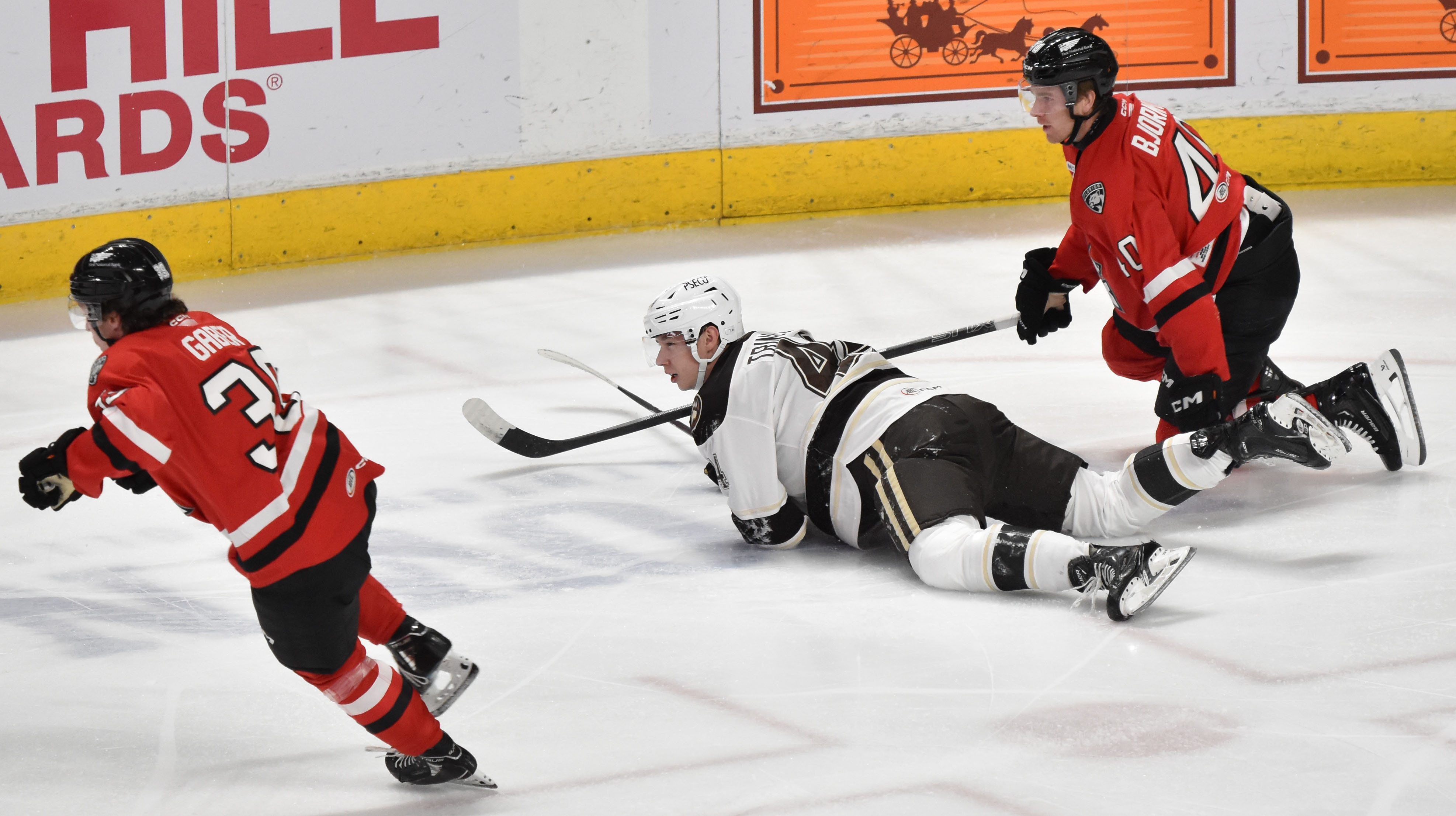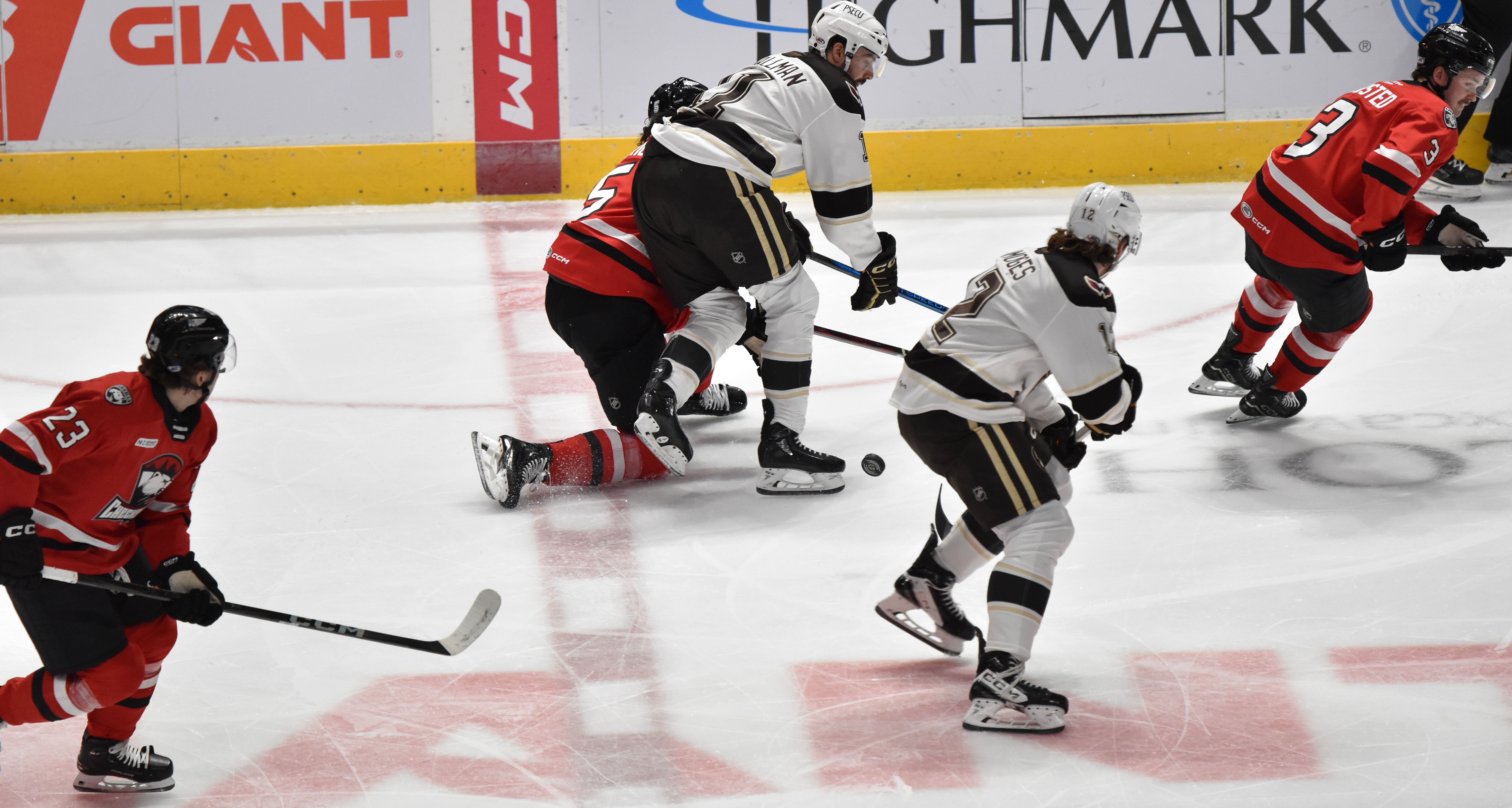The Bears made things interesting down the stretch by converting on a two-man advantage to pull within a goal, but the Checkers stomped out any comeback hopes with an empty-net dagger from Rasmus Asplund and a strong finish between the pipes from Ken Appleby – who ended the night with 22 saves and a key win over the division leaders.