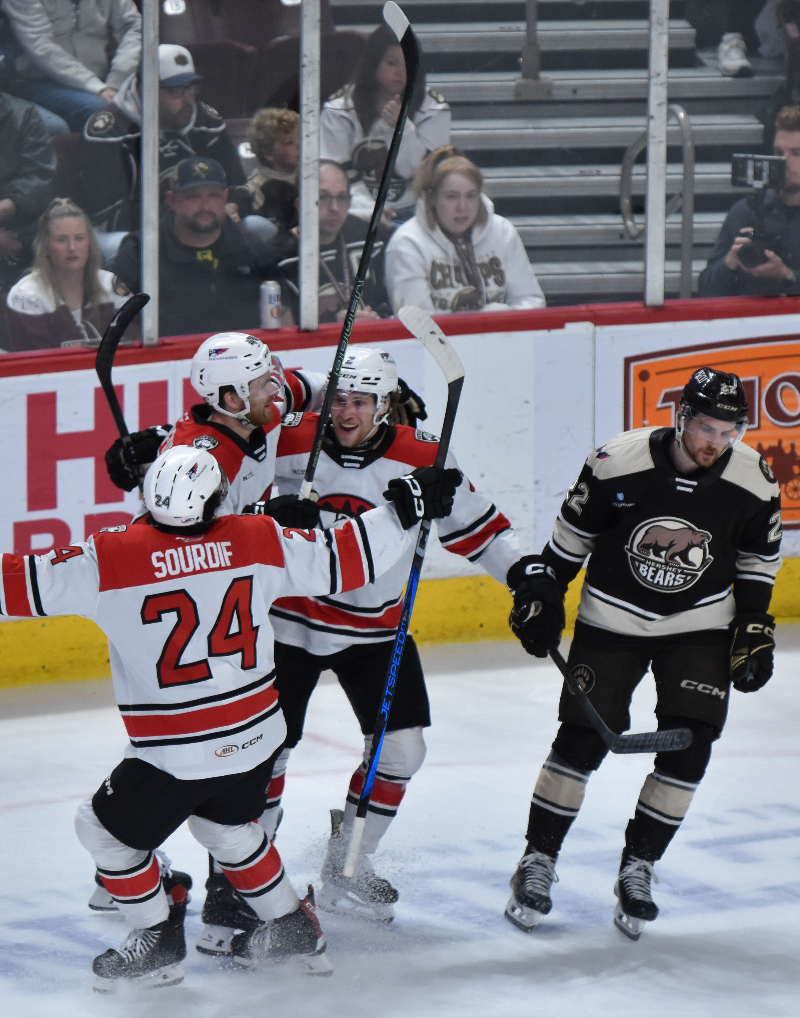 Charlotte rode a dominant second period to a 6-3 victory over Hershey on Wednesday night, completing a sweep of the Atlantic Division Finals and ending the Bears’ two-year reign as American Hockey League champions.