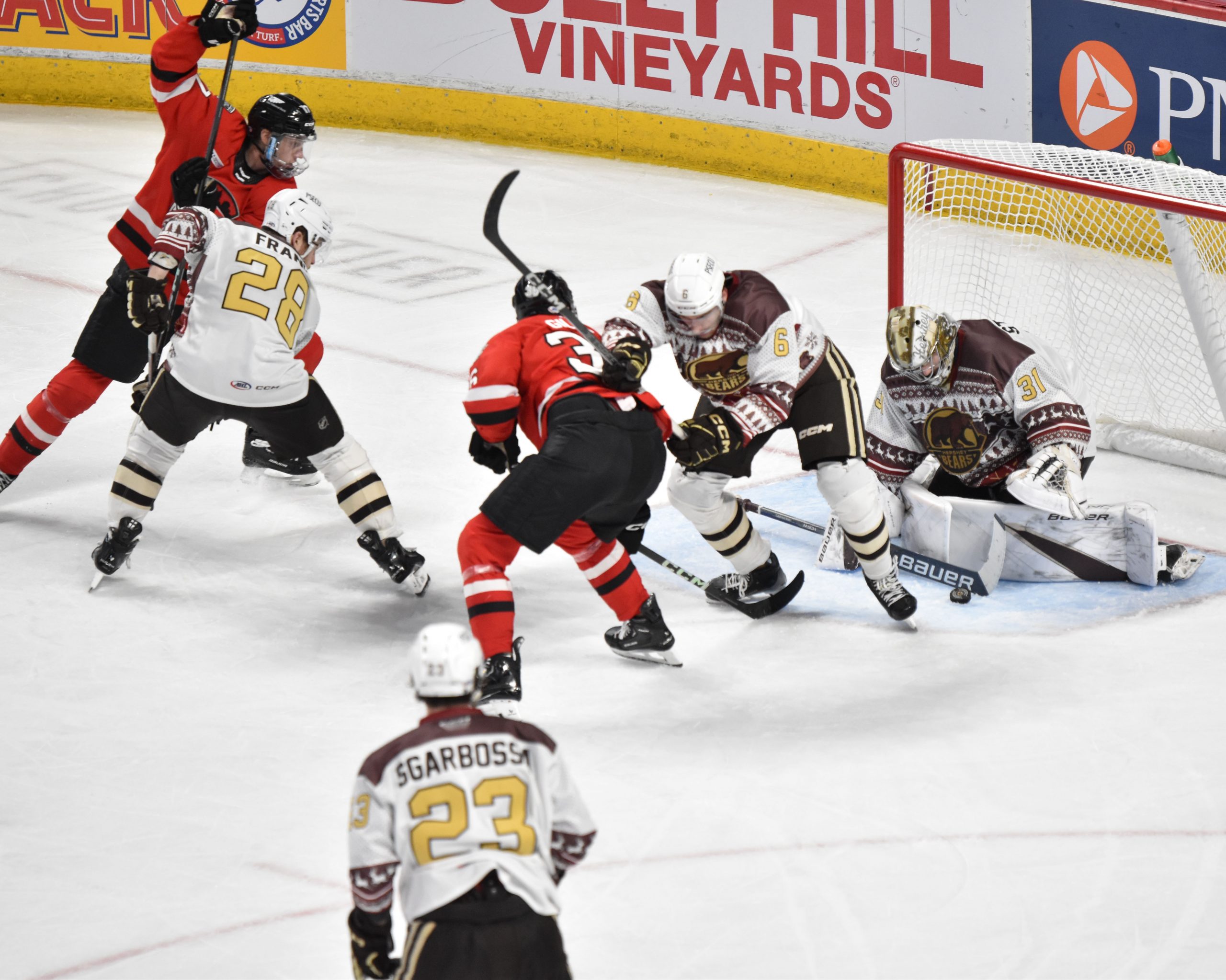 The Bears broke through before the first buzzer to cut into Charlotte’s lead, but things locked up from there – physicality ramped up and the two sides would sit in a stalemate until the third period.