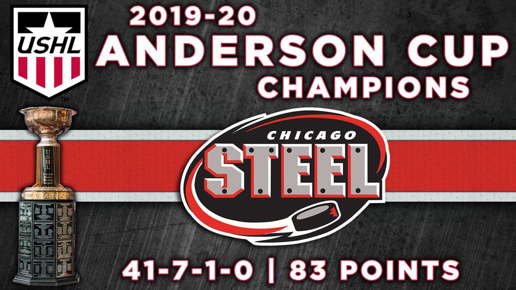 GENEVA, IL — After a historic regular season, the Chicago Steel (41-7-1-0, 83 pts) were named the 2019-20 Anderson Cup champions, the United States Hockey League announced Wednesday.