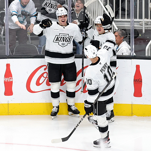Perry put the Kings in front 1-0 at 10:54 of the first period. Clarke’s shot from the top of the right circle tipped off Collin Graf’s stick and got behind Askarov. Perry stuffed the loose puck in at the goal line.