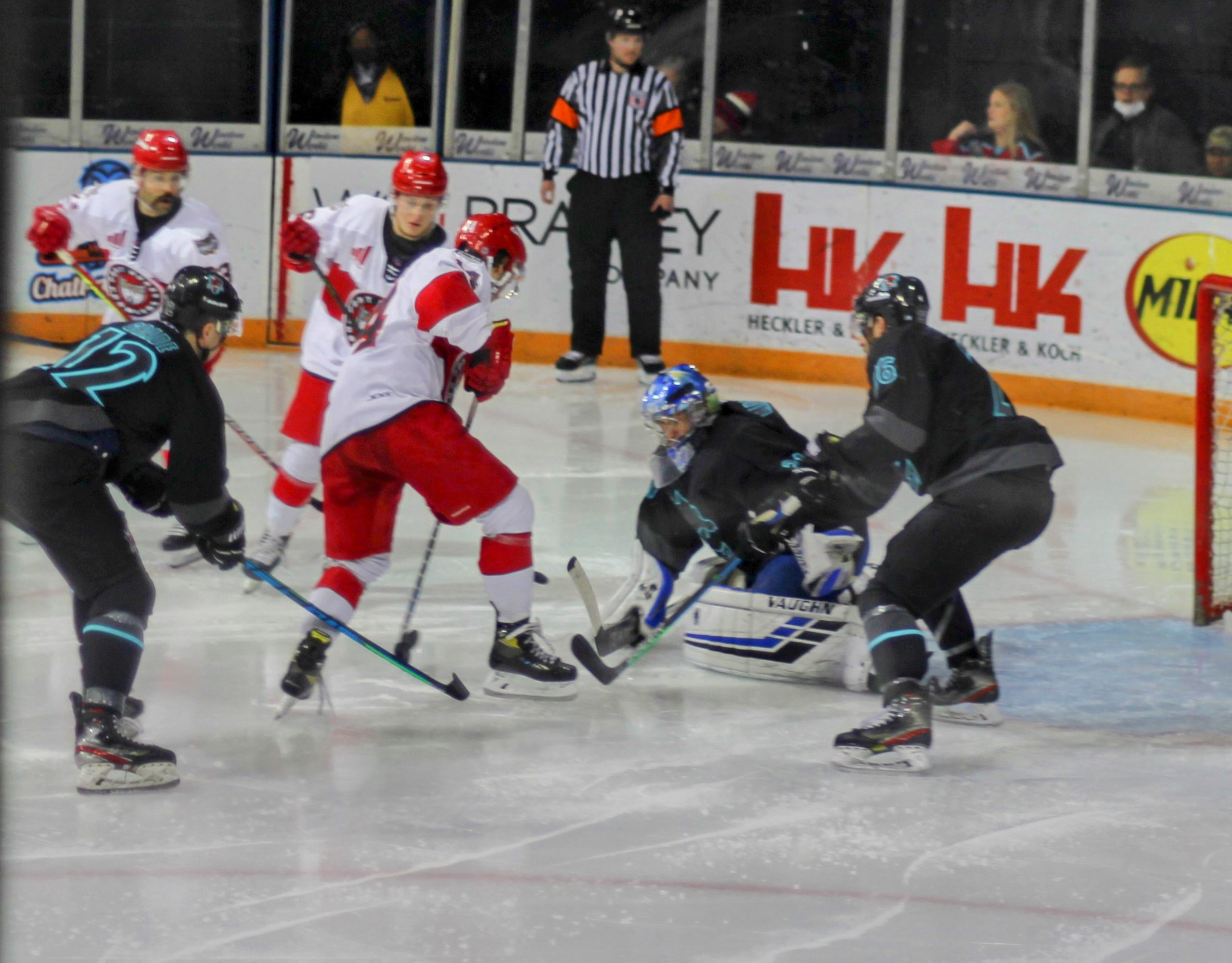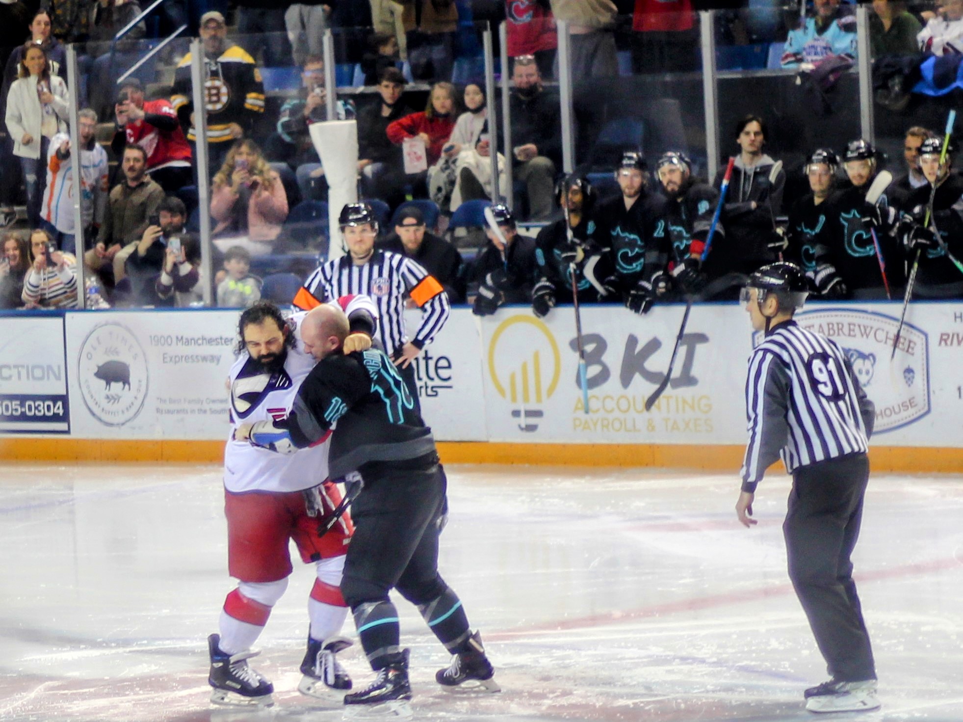 The second period started off with a rematch tilt for the 5th time between Joe Pace and Justin Schmit, much to the delight of the Columbus crowd just two seconds in to the period. Off of that energy, Adam Vannelli gave Columbus the lead finding some space low blocker on Cory Simons at the 4:03 mark to put the River Dragons up 3-2.