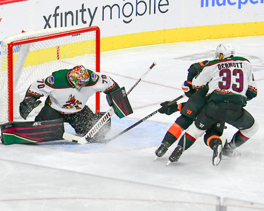 The Coyotes responded a little over three minutes later on a strike by Alex Kerfoot at 14:02 for a 3-2 lead headed to the third period.