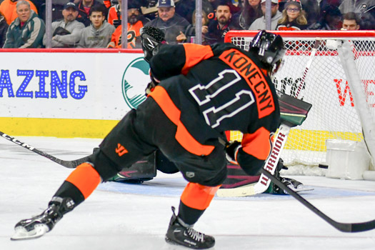 The replied again, this time from Travis Konecny who hit for a goal midway through the middle frame for a 2-2 score.