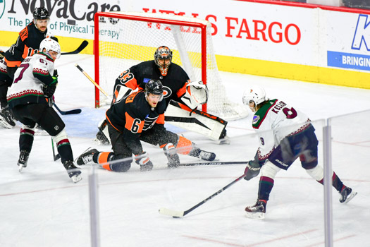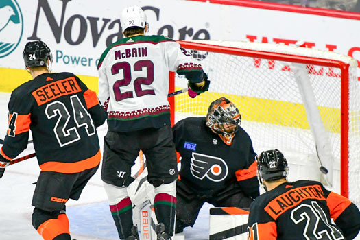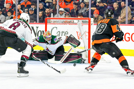 The Coyotes held that lead until the Flyers’ Morgan Frost struck at 4:23 of the middle frame to tie it, 1-1.