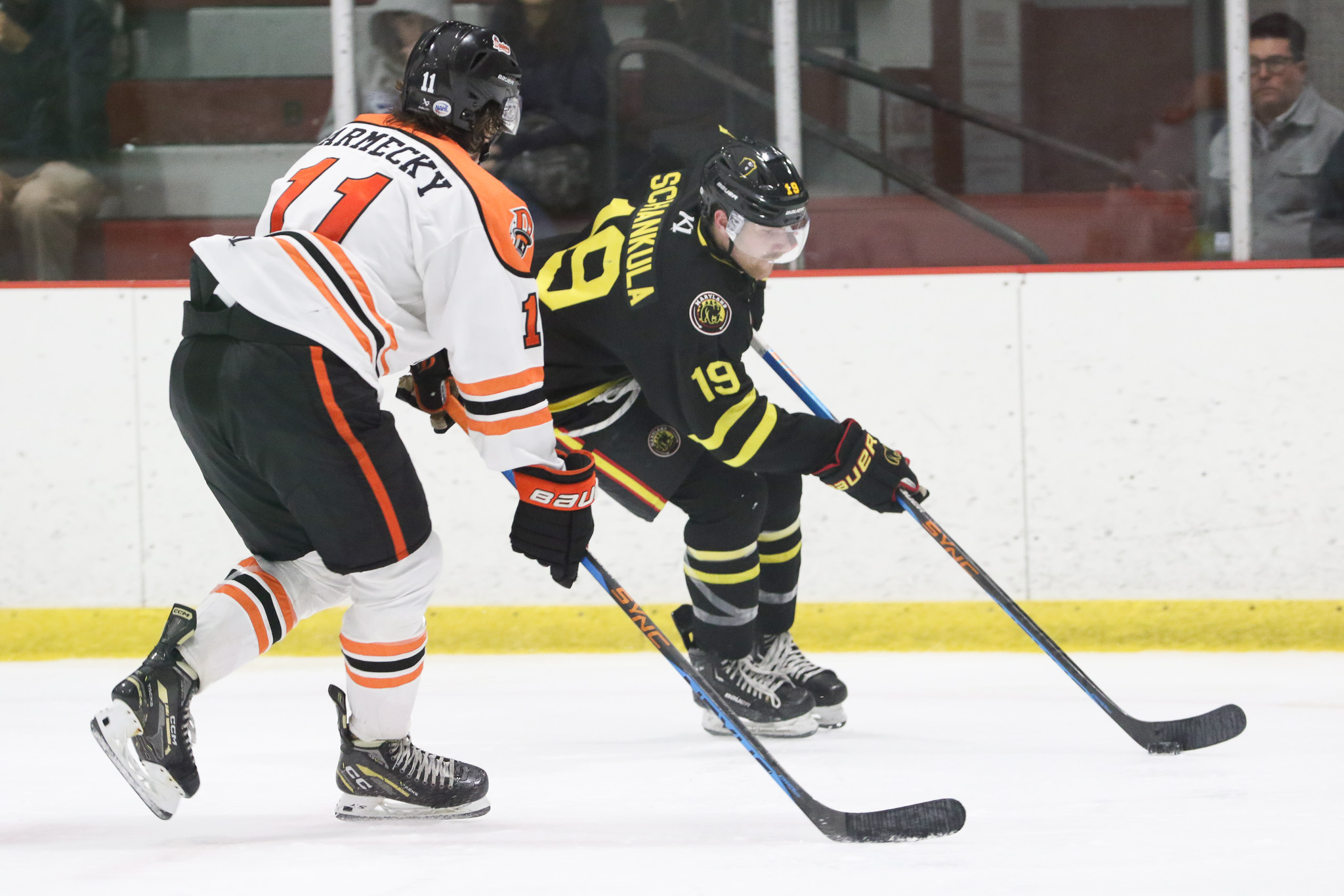 Alexious Georgaklis got on the board first for Danbury with assists from Emerson Molas and Aleksei Filimonov at 8:39 of the first period. Jesse Horacek would tie the game in the second period with assists from Keaton Lipsett and Ryder Nienhuis. It would be Emerson Molas scoring the game winner at 3:14 of overtime.