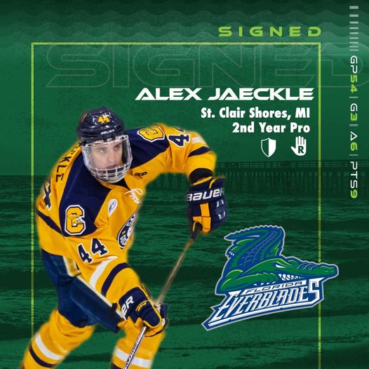 ESTERO, FLA – Florida Everblades General Manager Craig Brush along with Director of Hockey Operations and Head Coach Brad Ralph announced Thursday that they have signed defenseman Alex Jaeckle for the 2021-22 season. Jaeckle will be entering his second full season of professional hockey and his first with the Everblades.