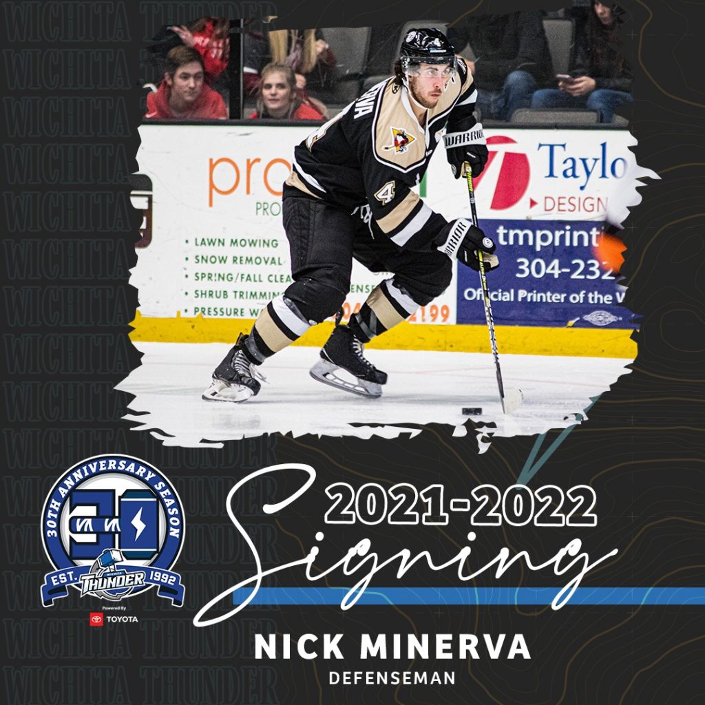 WICHITA, KS – The Wichita Thunder, ECHL affiliate of the National Hockey League’s Edmonton Oilers and American Hockey League’s Bakersfield Condors and powered by Toyota, announced the signing of defensemen Nick Minerva and Christian Hausinger for the 2021-22 season.
