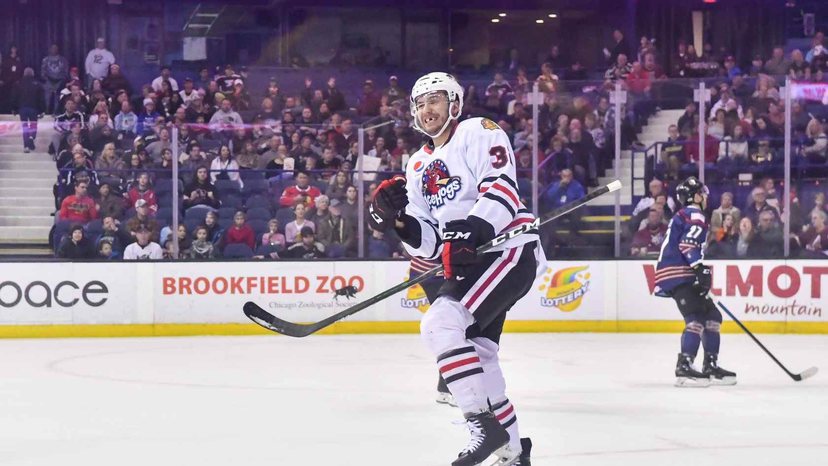 ROSEMONT, Ill. – Collin Delia made 34 saves and Gabriel Gagne notched a goal and an assist in his IceHogs debut as the Rockford IceHogs shut out the Chicago Wolves 2-0 at Allstate Arena on Sunday afternoon.