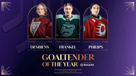 NEW YORK AND TORONTO – The Professional Women’s Hockey League (PWHL) today announced that Ann-Renée Desbiens of the Montréal Victoire, Aerin Frankel of the Boston Fleet, and Gwyneth Philips of the Ottawa Charge have been voted as the three finalists for the 2025 PWHL Goaltender of the Year award, presented by Rogers.