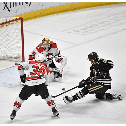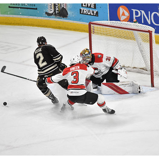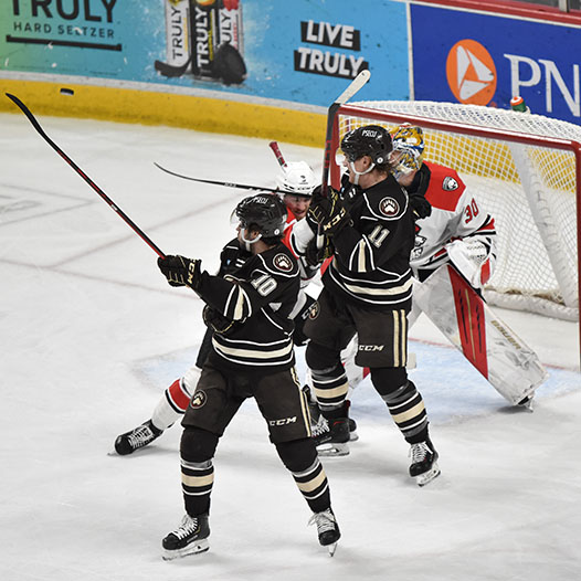 In the third period, Hershey outshot the Checkers 17-11, but Knight stole the show, stopping several breakaways, including a shorthanded chance from Shane Gersich.