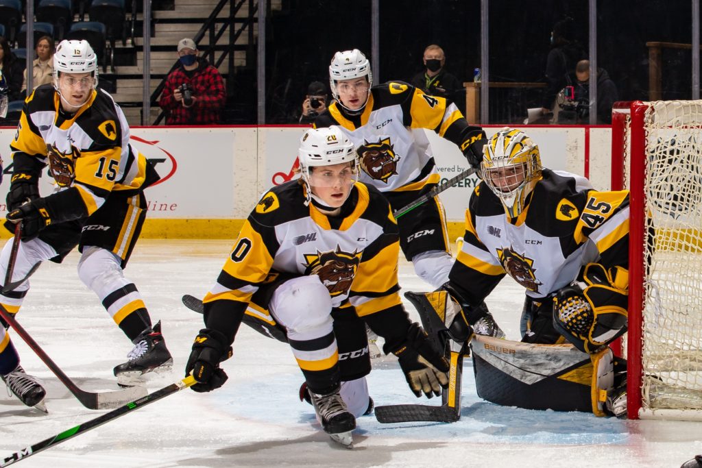 To open the game, the debuting Roberts had the first tremendous chance of the game sneaking off the left point to be denied by Otters’ goaltender Nolan Lalonde. Erie would open the scoring at 3:16 as Matteo Drobac would make an initial stop on an Owain Johnston shot but the rebound fell right to Daniel D’Amato, firing the puck past the Bulldogs netminder giving the Otters the 1-0 lead. Hamilton would battle back, earning a 5-on-3 power-play and off the ensuing faceoff Jan Mysak won the puck to George Diaco who set the puck on a tee for a Nathan Staios blast, scoring his 6th of the year and tying the game 1-1 at 15:45.