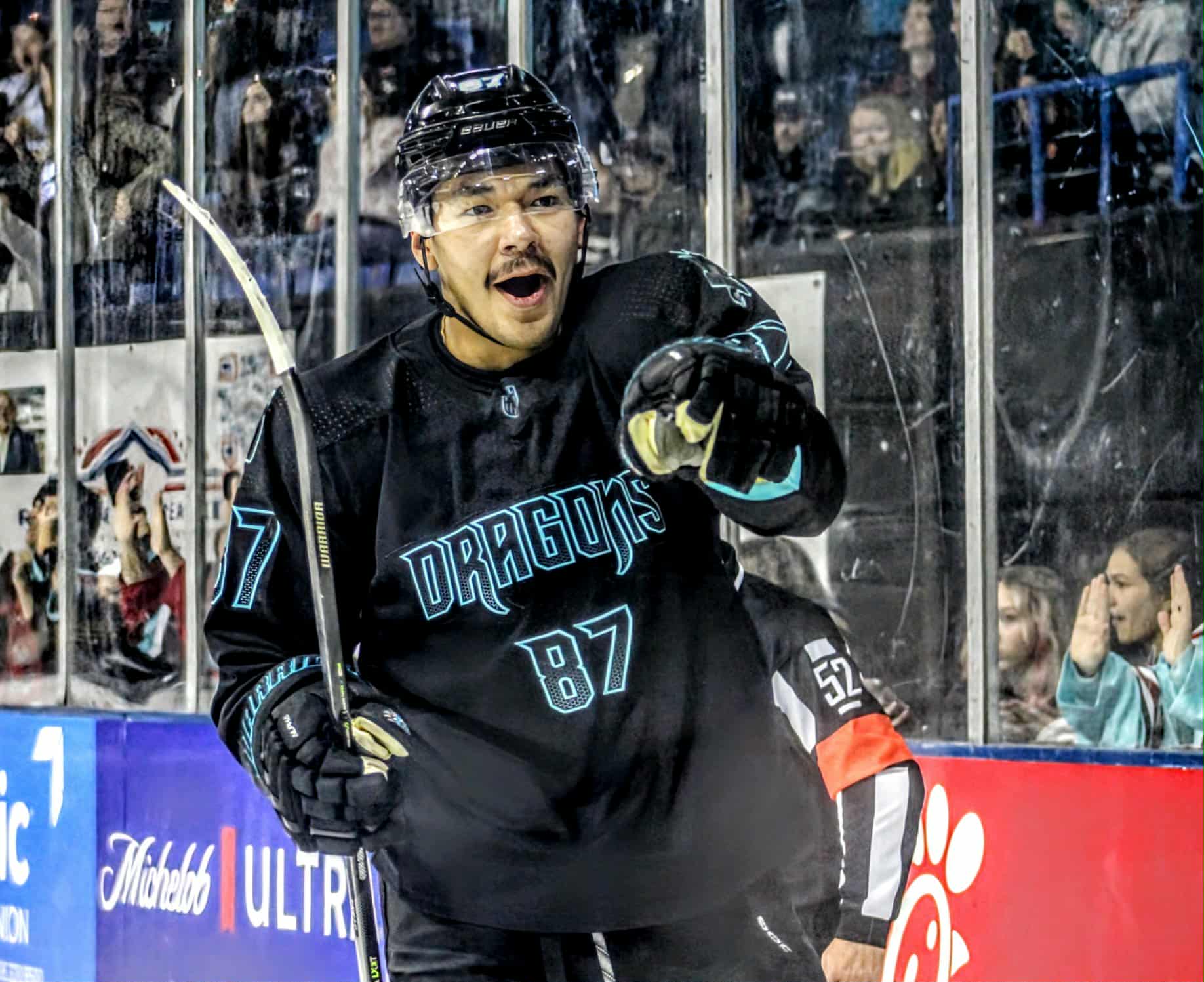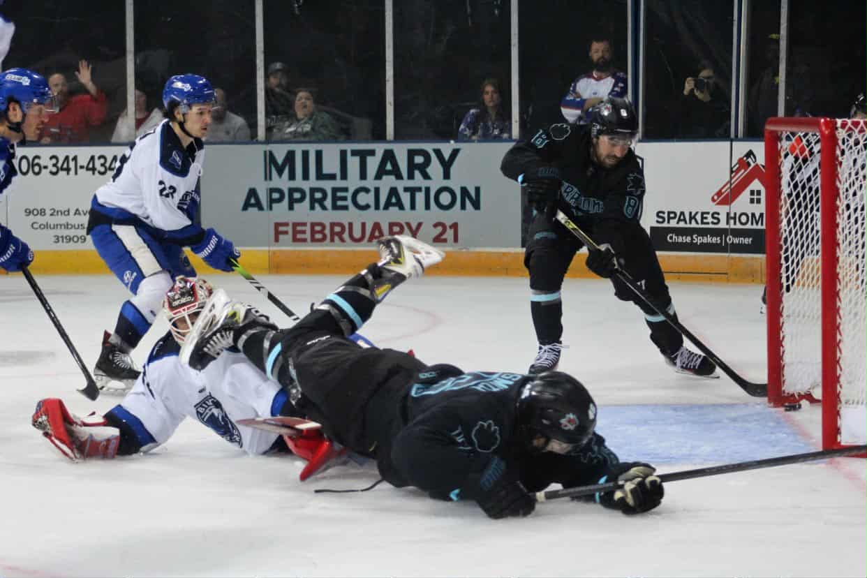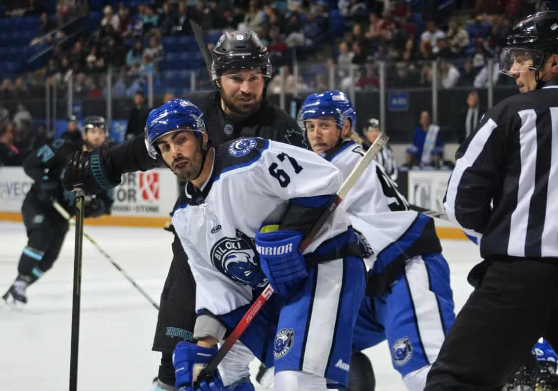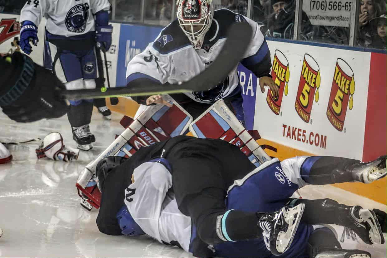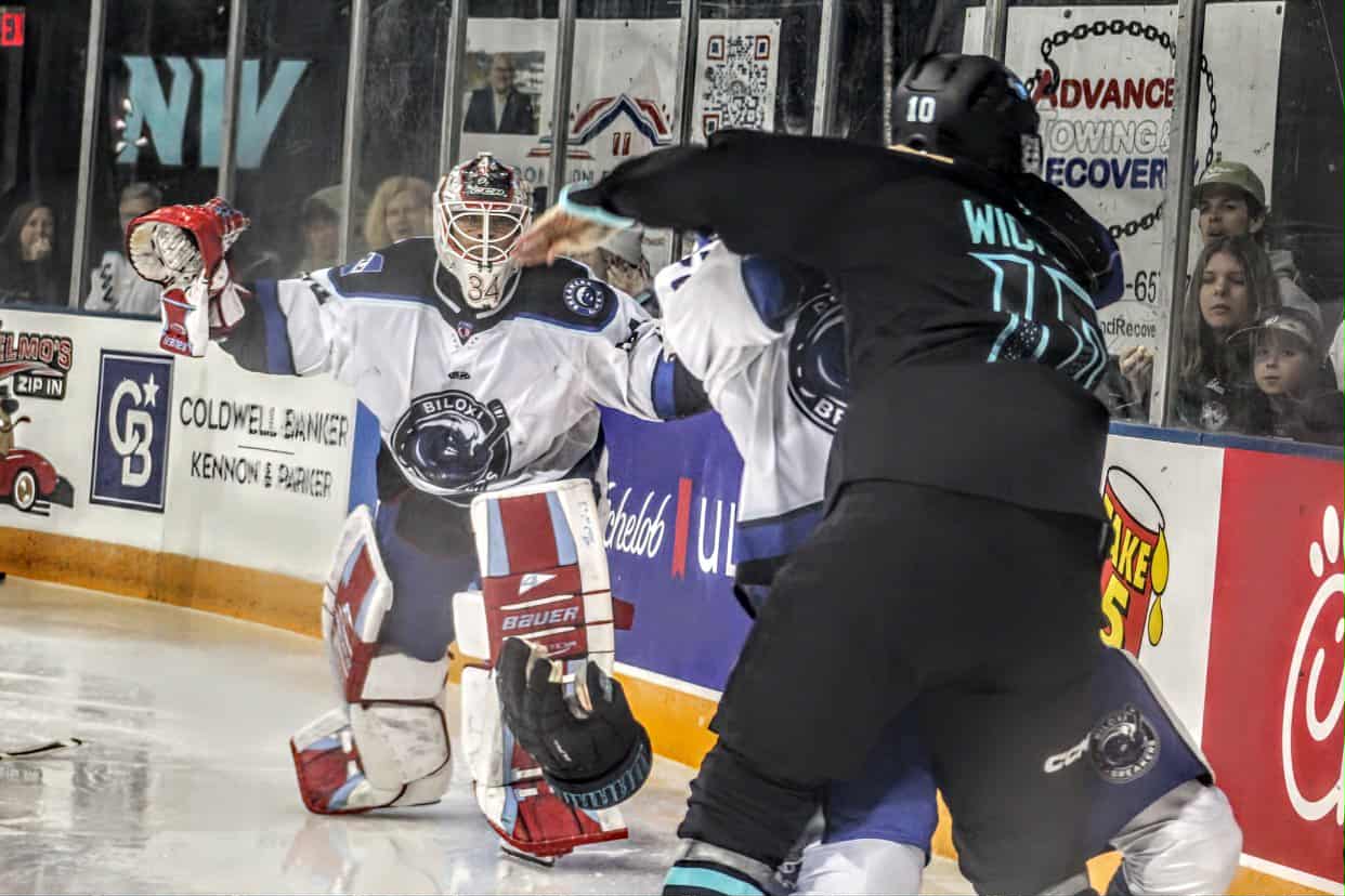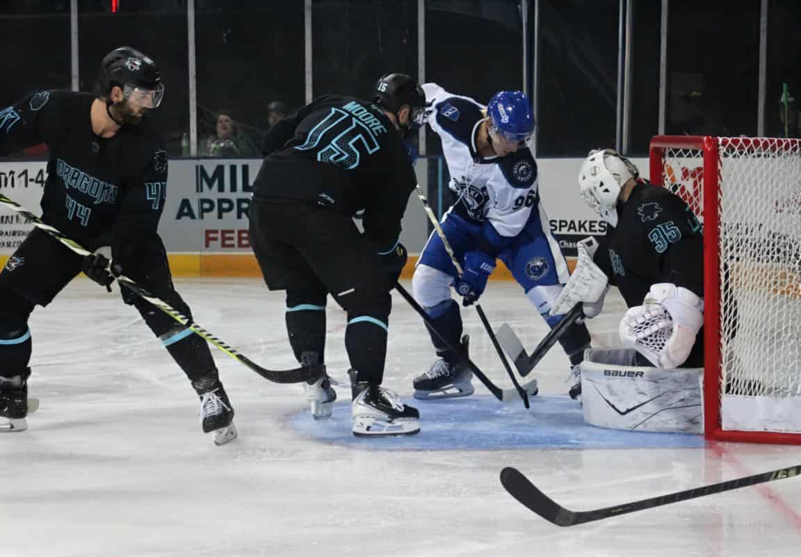 Although Aldiyar Nurlan and Khaden Henry produced goals for Biloxi, Alex Storjohann, Cody Wickline, and Benjamin Pizzimenti scored goals for the River Dragons, tying the game at 6-6 and forcing overtime.