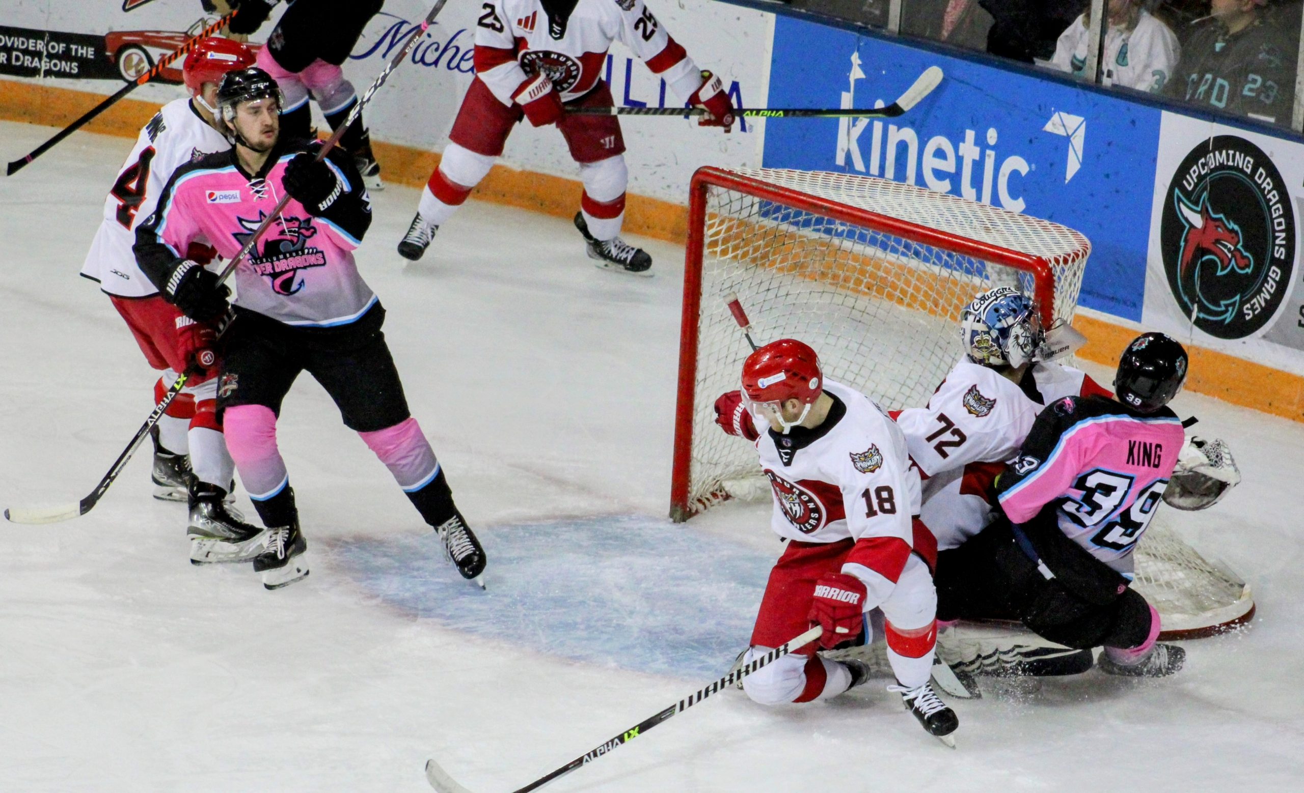 The dragons were the first to find the back of the net at 14:24 into the first period with the credit going to Kelly. At the 17:48 mark, the dragons and prowlers got into a scuffle which resulted in the dragons having two guys in the box. This gave the prowlers a 5-3-man advantage for the next two minutes. The prowlers took that opportunity to get the puck past the dragon goaltender with Vartiainen getting one in at 19:33. The prowlers would keep a man advantage for the next 16 seconds. Pietrantonio would get the puck near the bottom of their own circles and toss the puck in the air to clear it out. The puck would bounce and make its way into the prowlers’ net. This shorthanded goal would give the dragons a 2-1 lead with 20 seconds left in the first period.