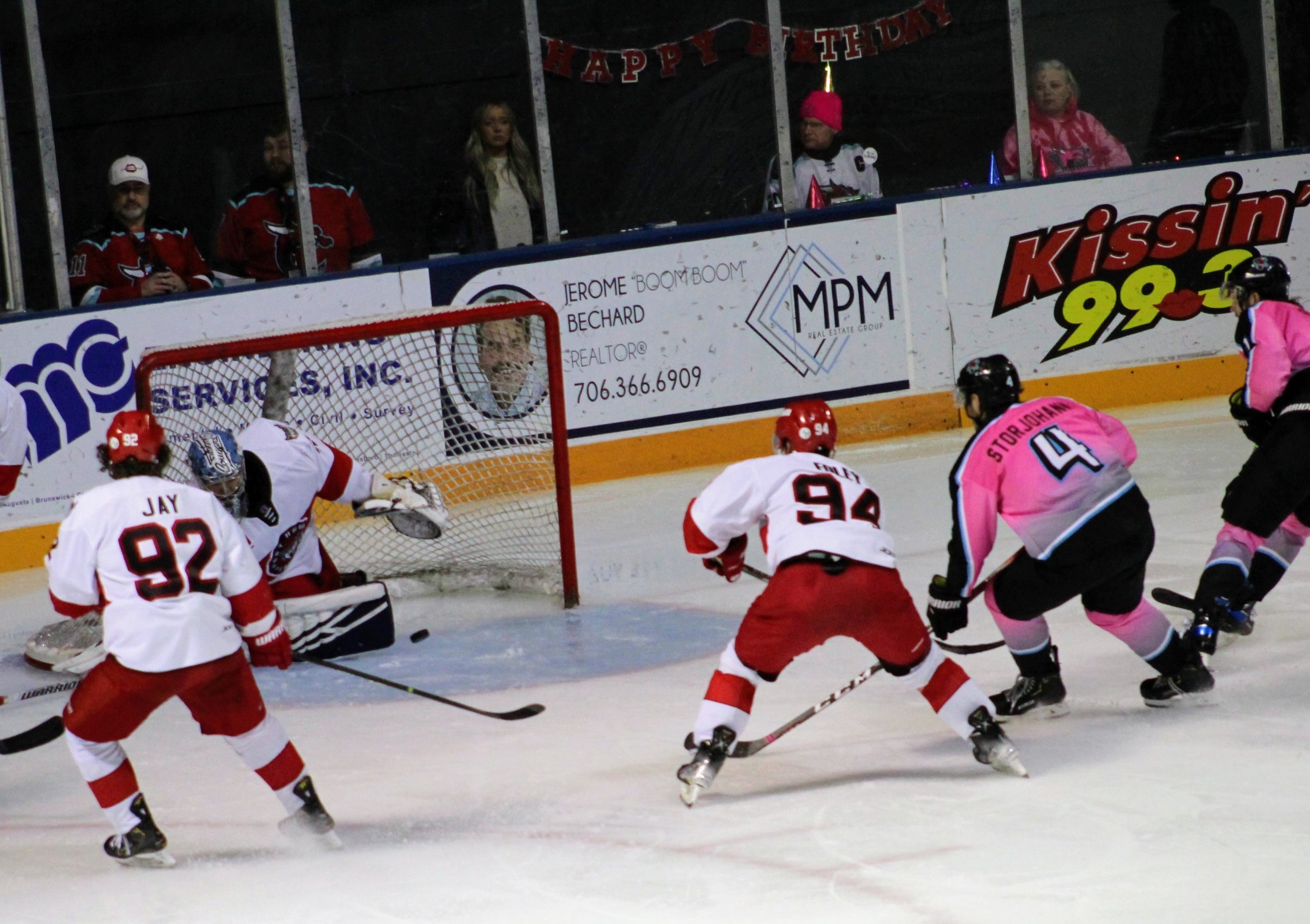 Columbus, GA- Relay for Life and the American Cancer Society assisted in the ‘Pink the Rink’ event for the dragons. It was encouraged to wear pink for all cancer awareness. This event drew a crowd with over 4,100 members of the community to support the ‘Pink the Rink’. The dragons even wore pink and black uniform combination to support the event and the purpose behind the color.
