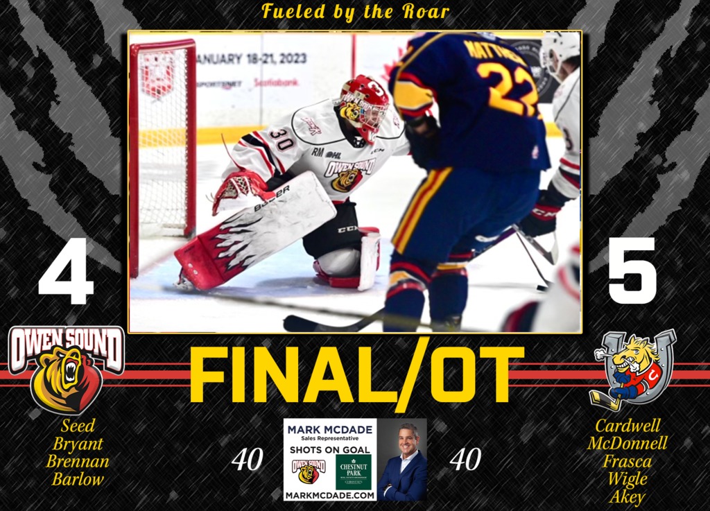There was no short of dramatics Friday night as the Owen Sound Attack welcomed the Barrie Colts to the Bayshore for the final game of the 2022 calendar. The Attack showed great character in coming back from a 3-0 first period deficit, but an overtime power play marker proved the difference as the visiting Colts claimed the win.