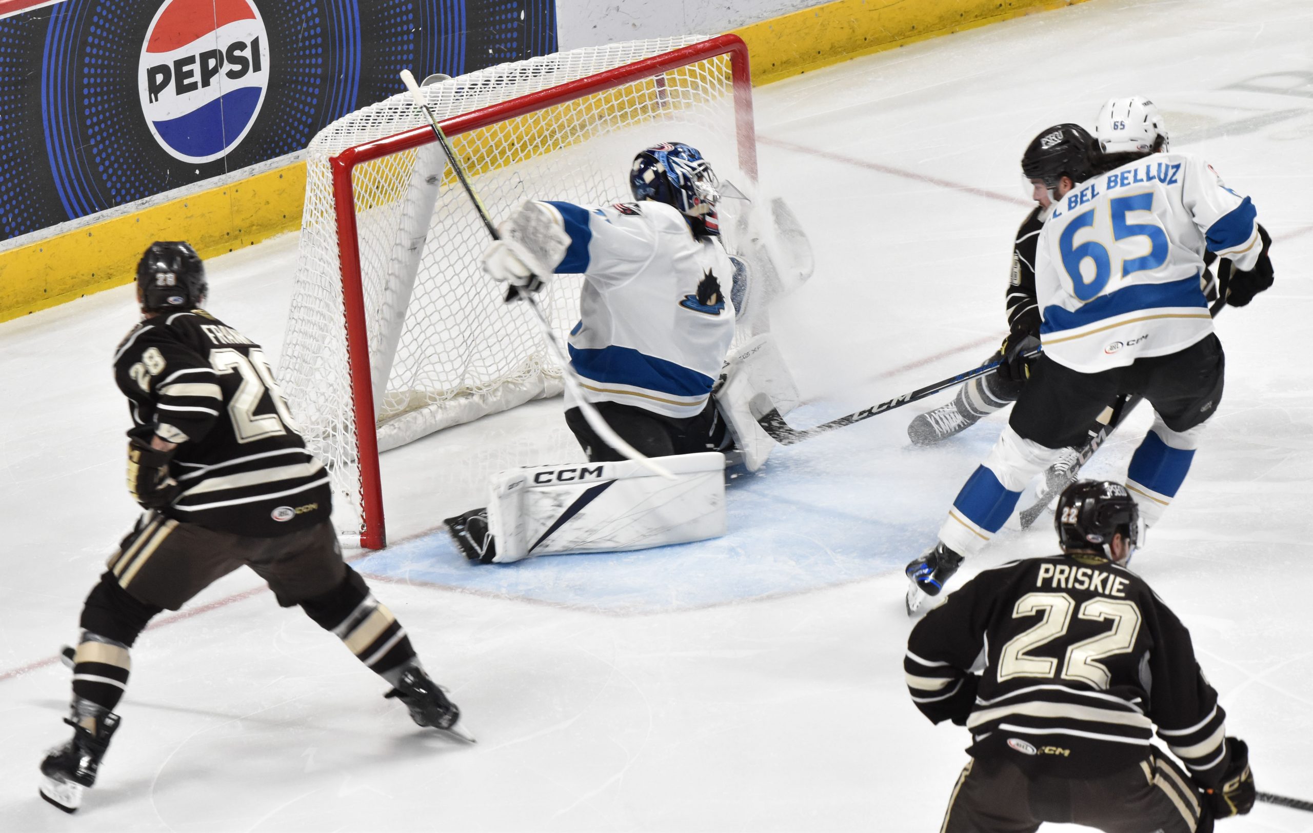 Pierrick Dubé was the hero of Game 2, netting the winning goal at 13:54 of the extra session. The play started with Dubé forcing a turnover behind his own net and skating up ice before dishing to Jimmy Huntington at the offensive blue line. Huntington hit Dubé with a return pass and Dubé beat Jet Greaves on the glove side for his second goal of the postseason.