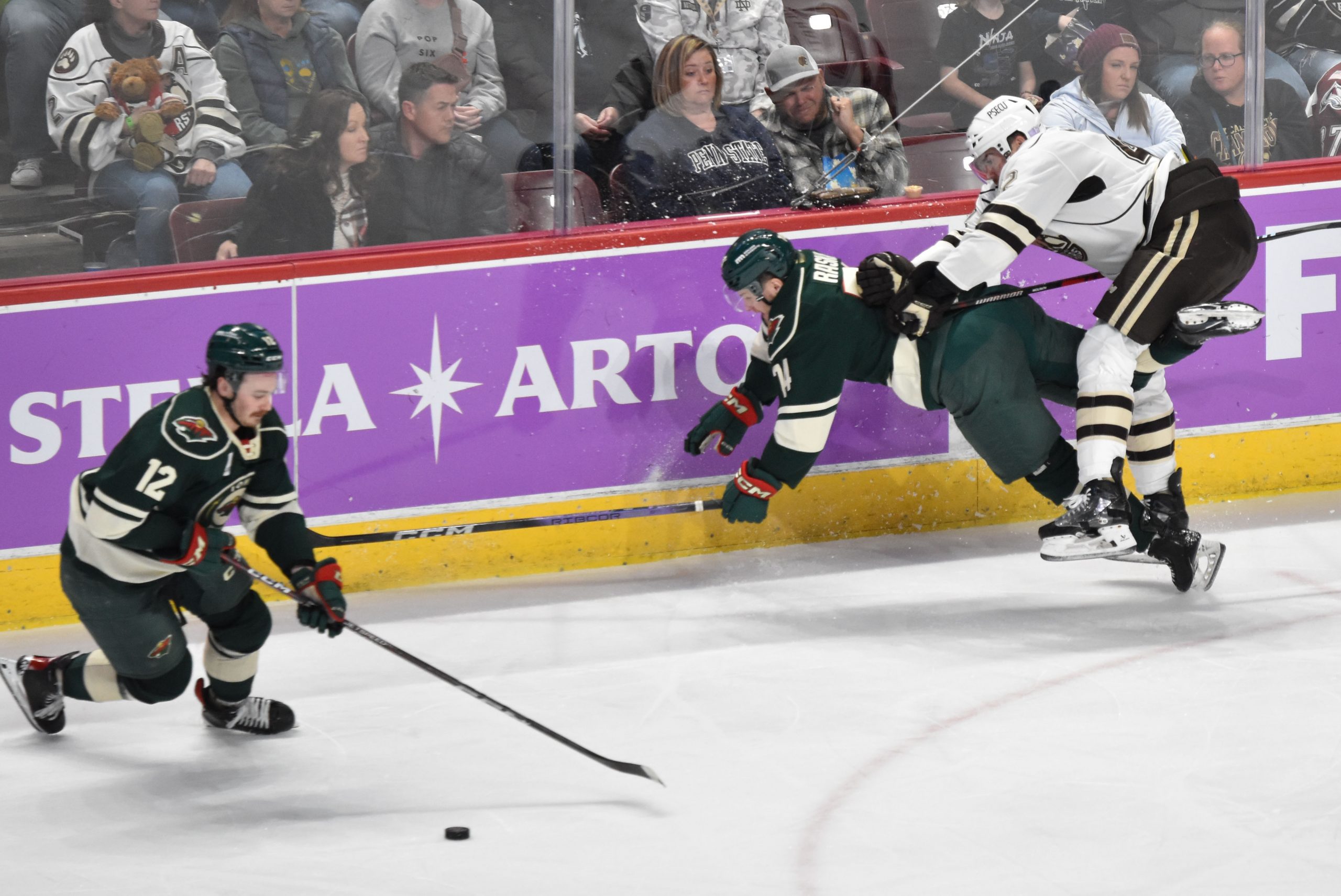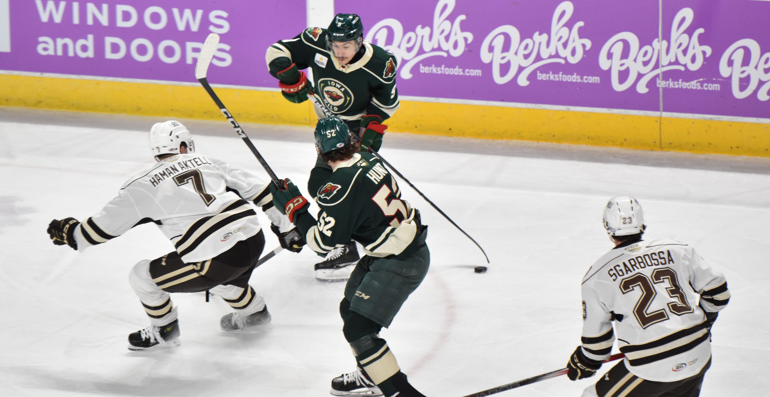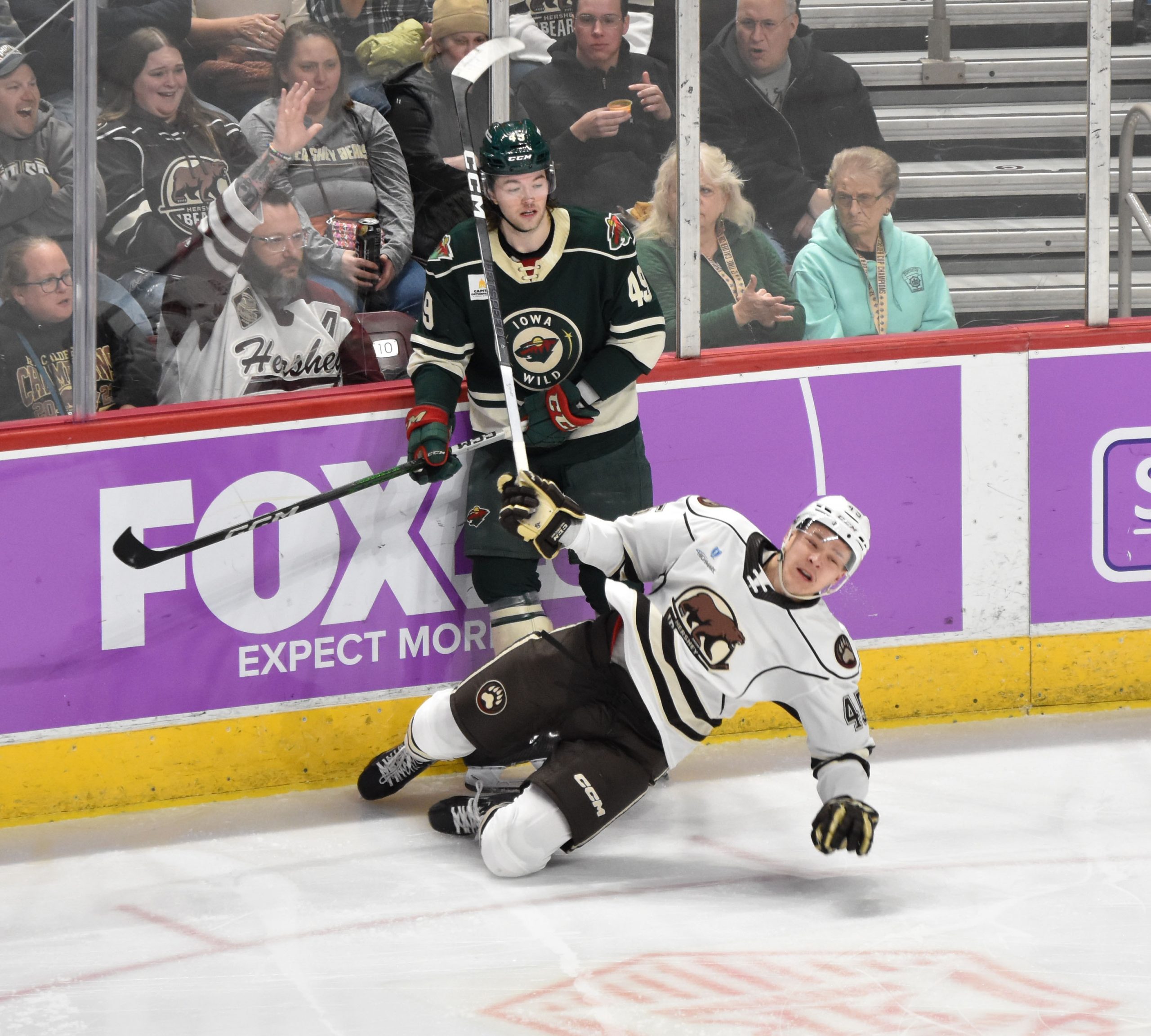 Shots finished 27-26 in favor of the Bears. Shepard went 25-for-26 to secure his eighth victory of the season; Wallstedt went 25-for-27 in the defeat for Iowa. Hershey did not receive an opportunity with the man advantage; the Wild went 0-for-1 on the power play.