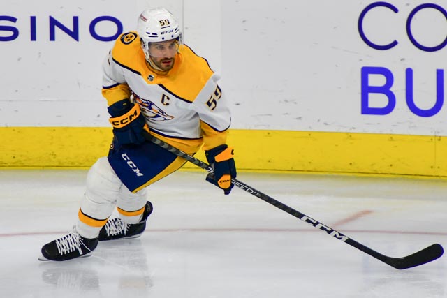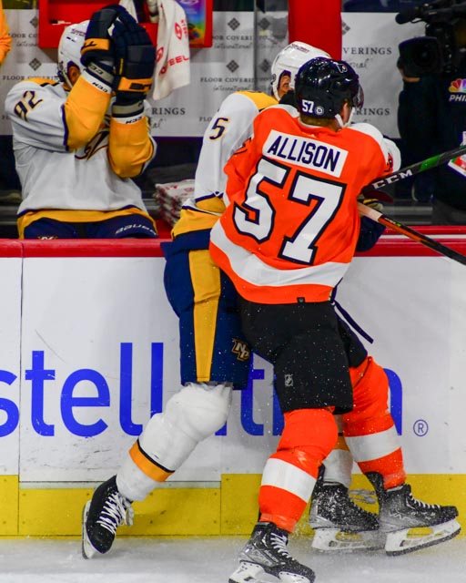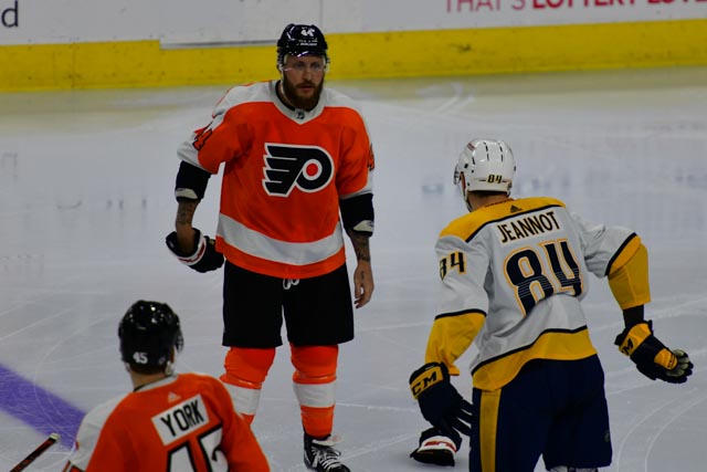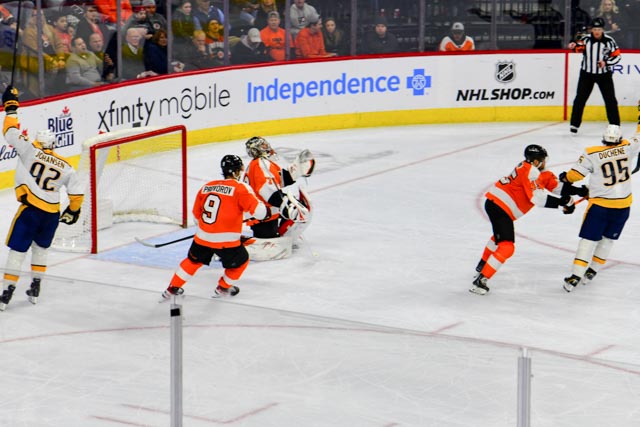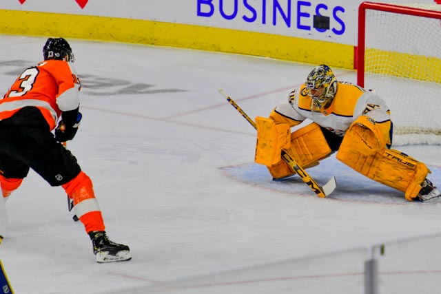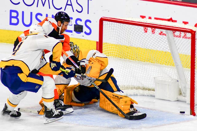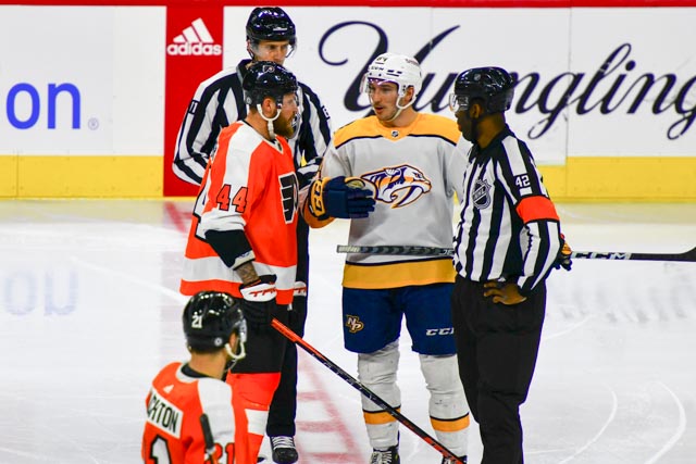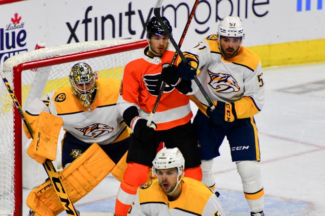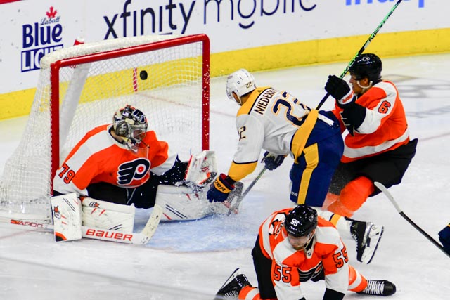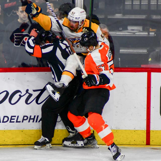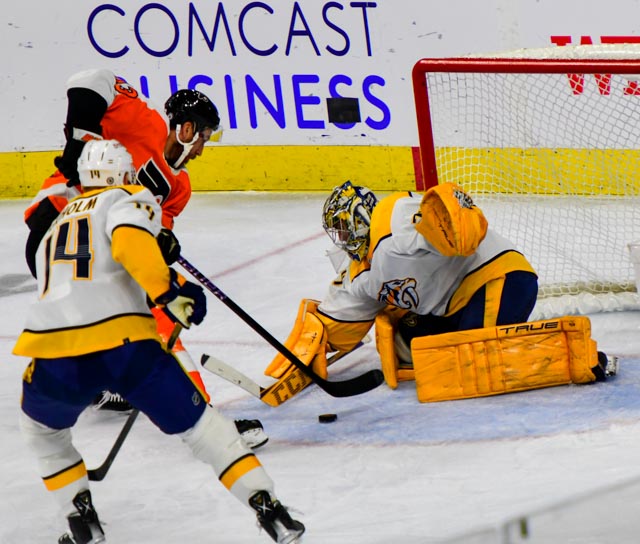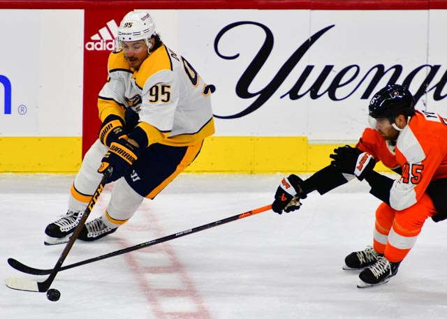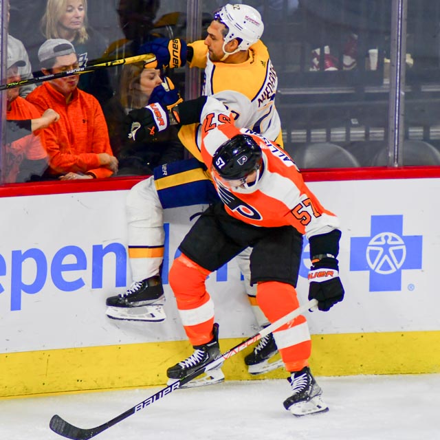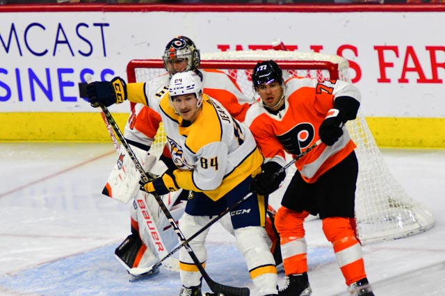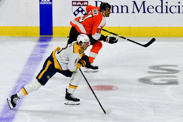 Nashville’s Filip Forsberg did not ice the final two periods of the match. He was hit with five seconds left in the fist period by the Flyers’ Rasmus Ristolainen .
