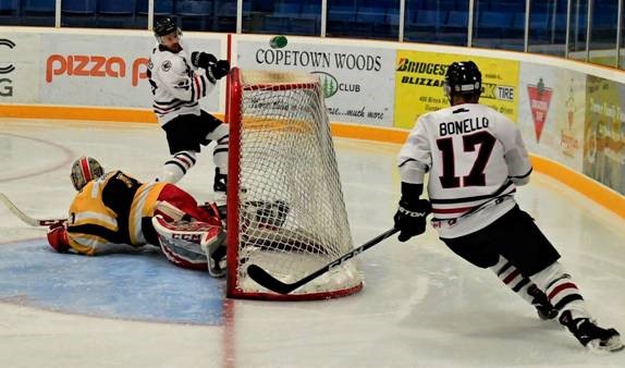 Last Friday, Brad Bonello led the charge with a three-point night as the McCoys defeated the Whitby Dunlops 6-3 in the Grightmire Arena, for its second victory of the season.