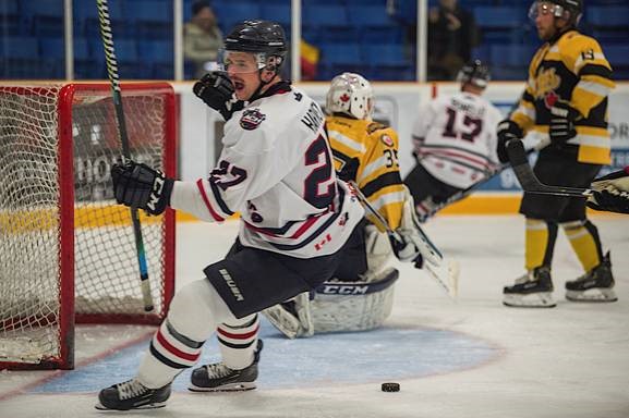 Bonello paced the Dundas attack with a five-point night scoring three goals and adding two assists. In addition, the club got solid three-point efforts from Mackenzie Wood (two goals and one assist), Phil Brewer (two goals and one assist), and Cam Watson (one goal and two assists).