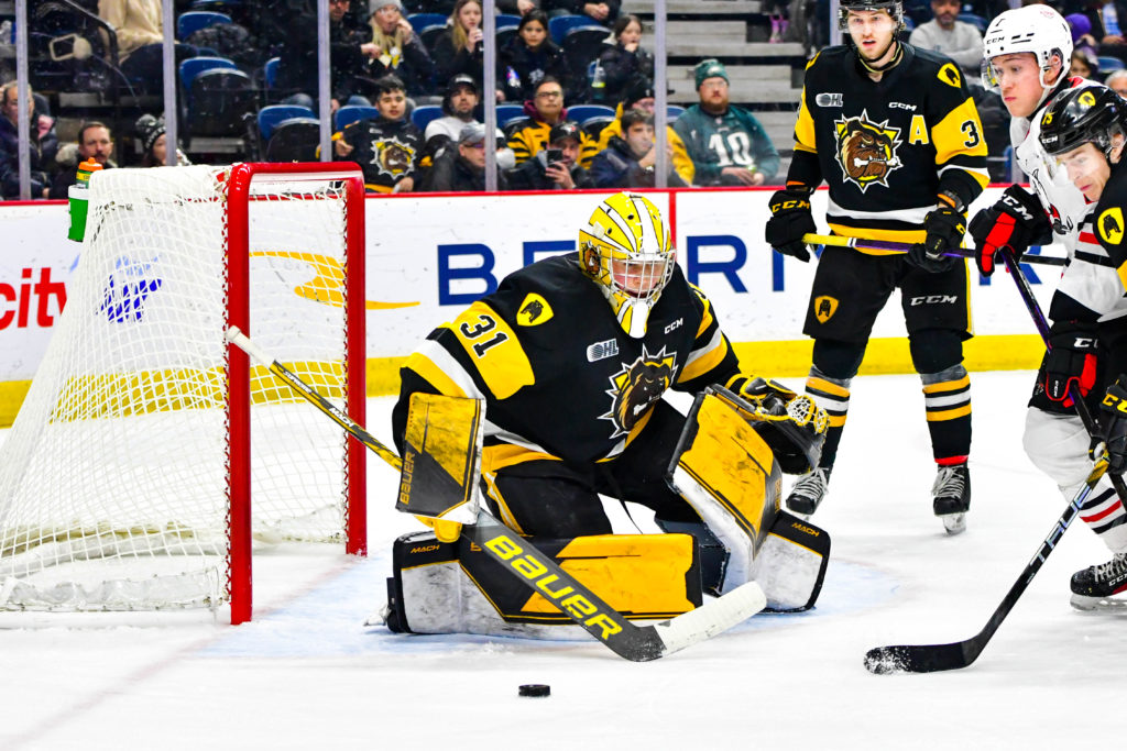 As Jorian Donovan was exiting the penalty box just past six and a half minutes into the frame, he & Lawson Sherk were sprung for a 2-on-0 opportunity and made no mistake going tic-tac-goal style with Donovan finishing it off, giving the Bulldogs their first lead of the game 4-3 on Donovan’s 11th at 6:45. The Bulldogs lead doubled just a couple minutes later as Patrick Thomas finished off a Nick Lardis wrap-around chance, for his 15th of the season, after Sahil Panwar started a goal mouth scramble to make it a 5-3 game at 8:45. With the game 4-on-4 Niagara drew one closer, capitalizing on a 2-on-1 with Declan Waddick crashing the net after a Zackary Lavoie shot trickled through the gear of Egorov, making it a 5-4 game at 11:41. With 1:25 left in the game, Niagara took their time out and emptied their net for the extra attacker. David Egorov came up big in the final minute, making a blocker save in the dying seconds securing the 5-4 win for the Bulldogs, and Egorov’s first career OHL win, becoming the youngest goaltender in Bulldogs history to earn an OHL win in the process.