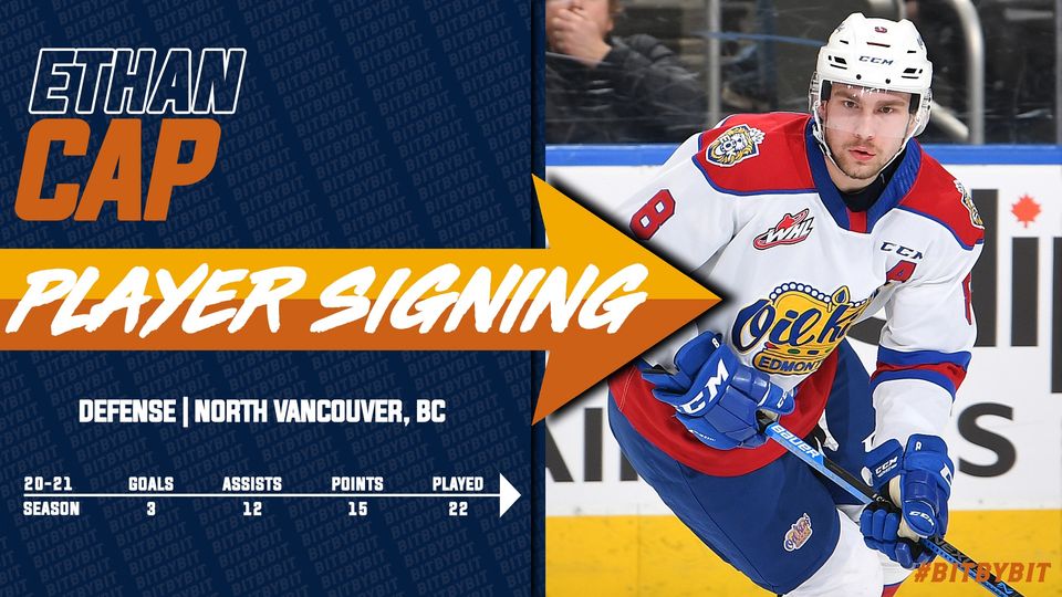 Cap, a North Vancouver, BC native, spent the previous five seasons with the Edmonton Oil Kings in the Western Hockey League (WHL) after being drafted by the team with the 11th overall pick in 2015. Since joining the Oil Kings, Cap totaled 85 points in 287 career games for the Alberta-based club.