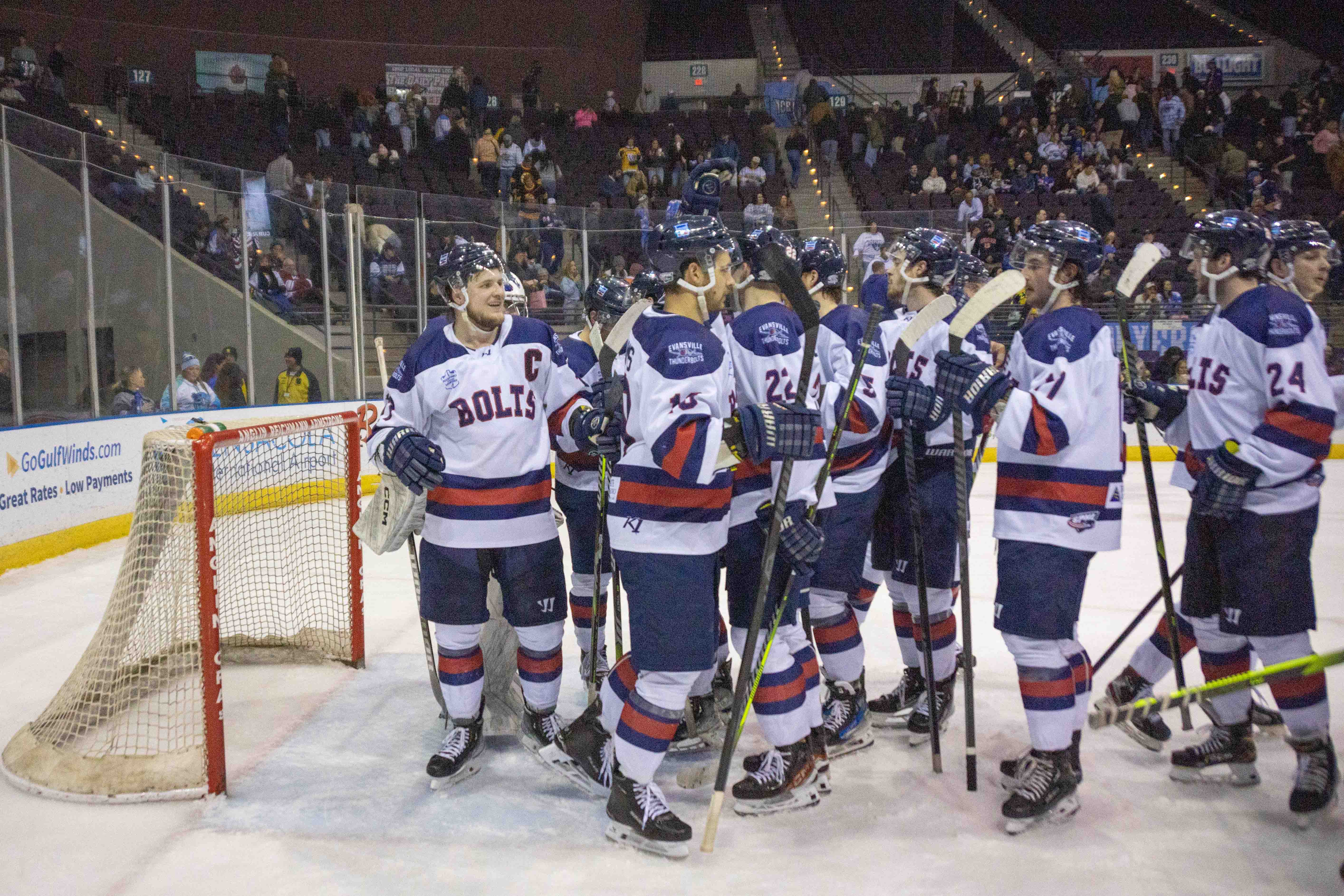 With 3:23 left, Kirton got a rebound from his own shot and buried the go-ahead goal past Karpinski. The Thunderbolts then got an empty net goal immediately after the faceoff that followed the Ice Flyers timeout in the final two minutes.