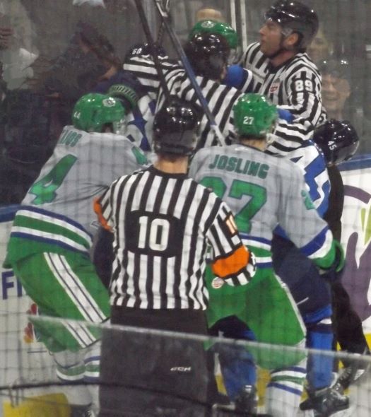 The teams traded goals in the initial 10 minutes of the contest to set the stage for a busy opening frame. Bobo Carpenter started the scoring to spot the Everblades an early 1-0 lead. Carpenter’s shot from the right circle was the Blades’ third attempt in rapid-fire succession, as the team’s leading goal scorer potted his 17th goal of the year just 2:17 into the contest. Sean Josling and Zach Uens earned the assists.