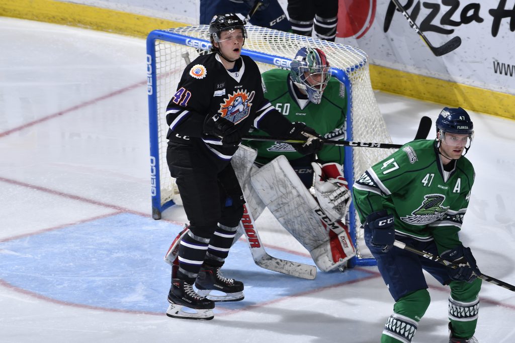 Whether the fight woke the Everblades up or not, they did start a run of goals at the 5:56 mark of the middle frame. Perkovich started it by causing a turnover and skating from the corner to the net along the goalline without so much as a threat from and Orlando defender. Ingram attempted to lunge and knock the puck away but Perkovich deftly drew it around the sliding netminder and tucked it home for his 20th of the season and a 3-1 margin.