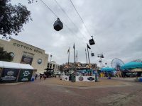 Pods carried fans overhead on cables from one end of the complex to the other. The ferris wheel spun continuously leading up to game time and then starting up again post-game for four more hours. Bells, sirens and lights went wild when someone one at one of the carnival games. It was really a wonderful site.