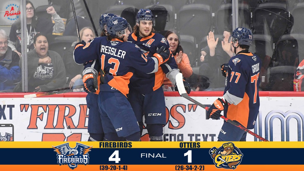 The Firebirds held on for a 4-1 victory. In total, they outshot the Otters 34-29 while controlling the faceoff dots 38-22. Flint finished 1-for-5 with extra man while holding Erie off the scoreboard with five power-play chances.