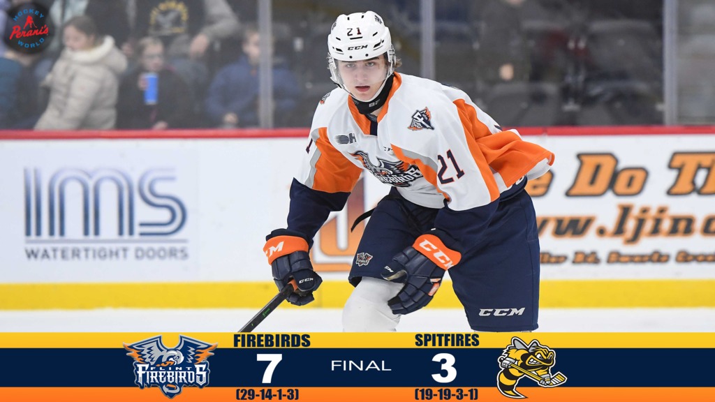 Sarnia, ONT. – It was Family Day in Canada, giving the Firebirds played an unusual Monday afternoon matinee today against the Sarnia Sting. In front of 50% capacity, the Firebirds sent the crowd home unhappy with a 7-3 win over the Sting. Flint picked up their 29th win of the year, tying them with Mississauga for most in the OHL. Captain Brennan Othmann (New York Rangers) skated in his 100th career OHL game, he added a goal and assist to get to 99 career points earning Third Star honors. Ethan Keppen (Vancouver Canucks) had two goals, and was First Star, while Amadeus Lombardi, Second Star, had three assists and Simon Slavicek posted a goal and assist. Luke Cavallin got the start in net for Flint, coming off his sensational 51-save performance Saturday vs. Windsor, and it was Benjamin Gaudreau (San Jose Sharks) between the pipes for the Sting.