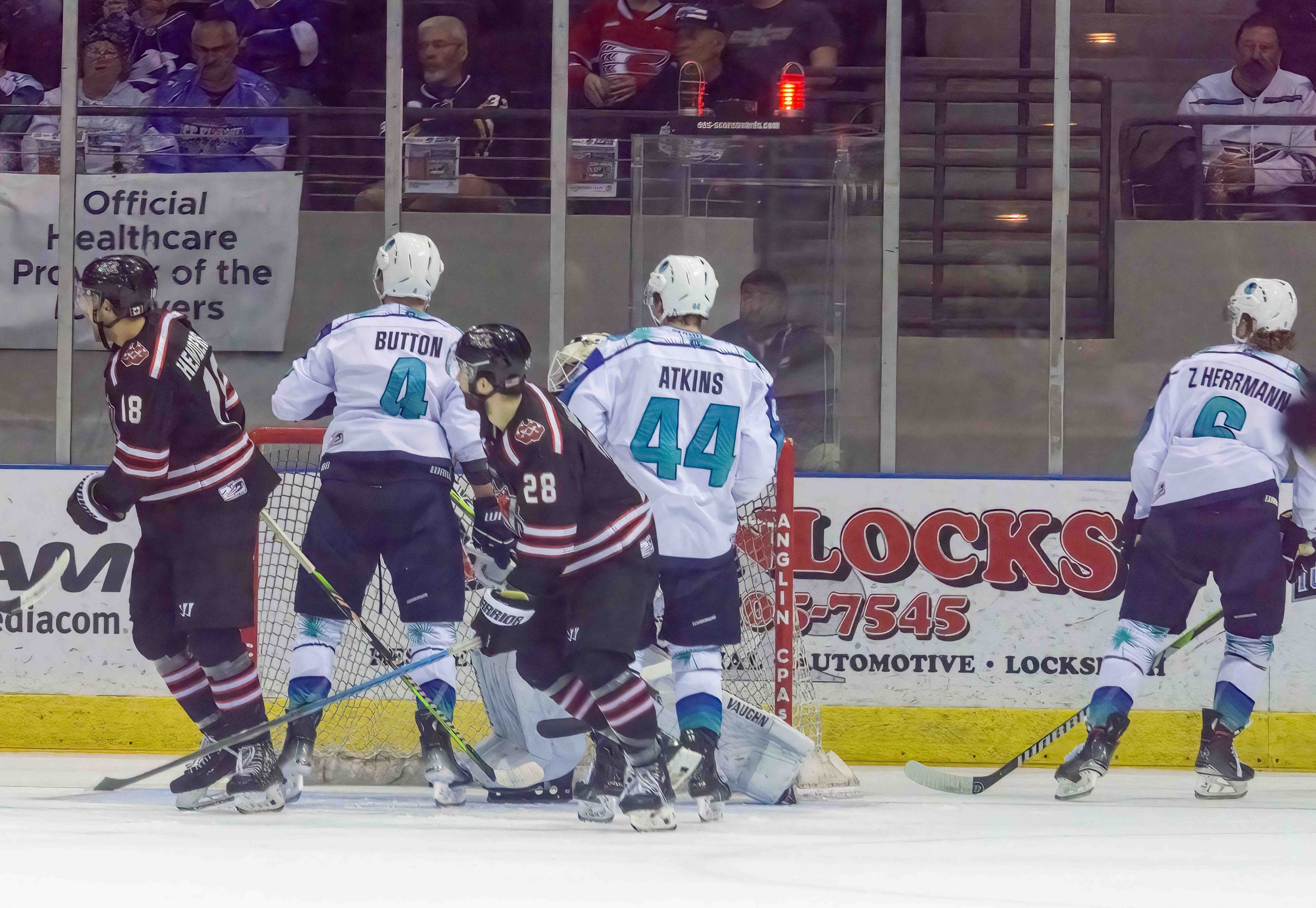 Troy Button tied things up for the home team at the 16:47 mark after deflecting a shot by newcomer, Erik Urbank, scoring his first professional goal.