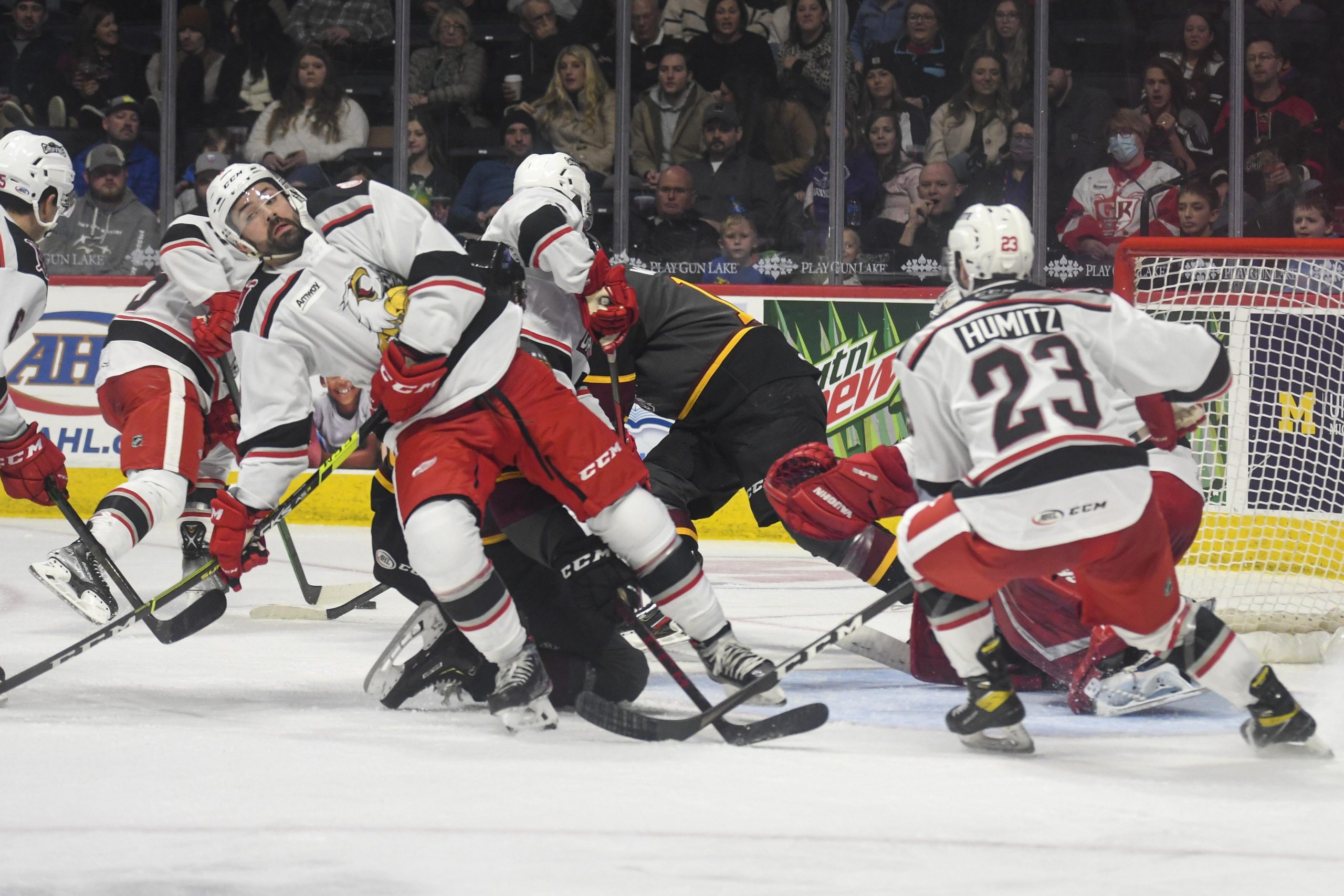 Grand Rapids (7-6-2-1) opened the scoring at 12:19 of the first on defenseman Jared McIsaac’s first professional goal. Kris Criscuolo dragged a faceoff win back to McIsaac, who issued a wrister from the high slot.